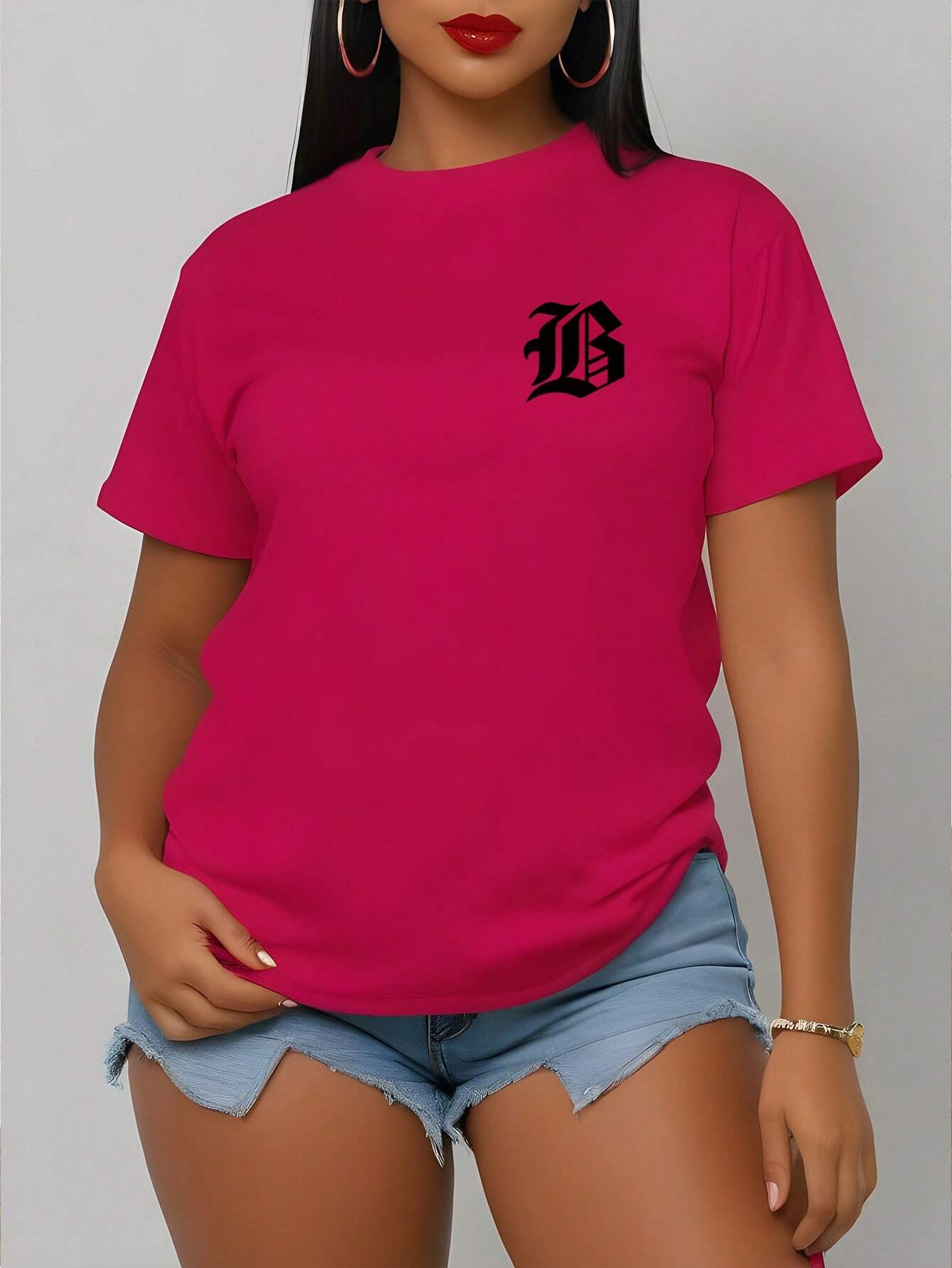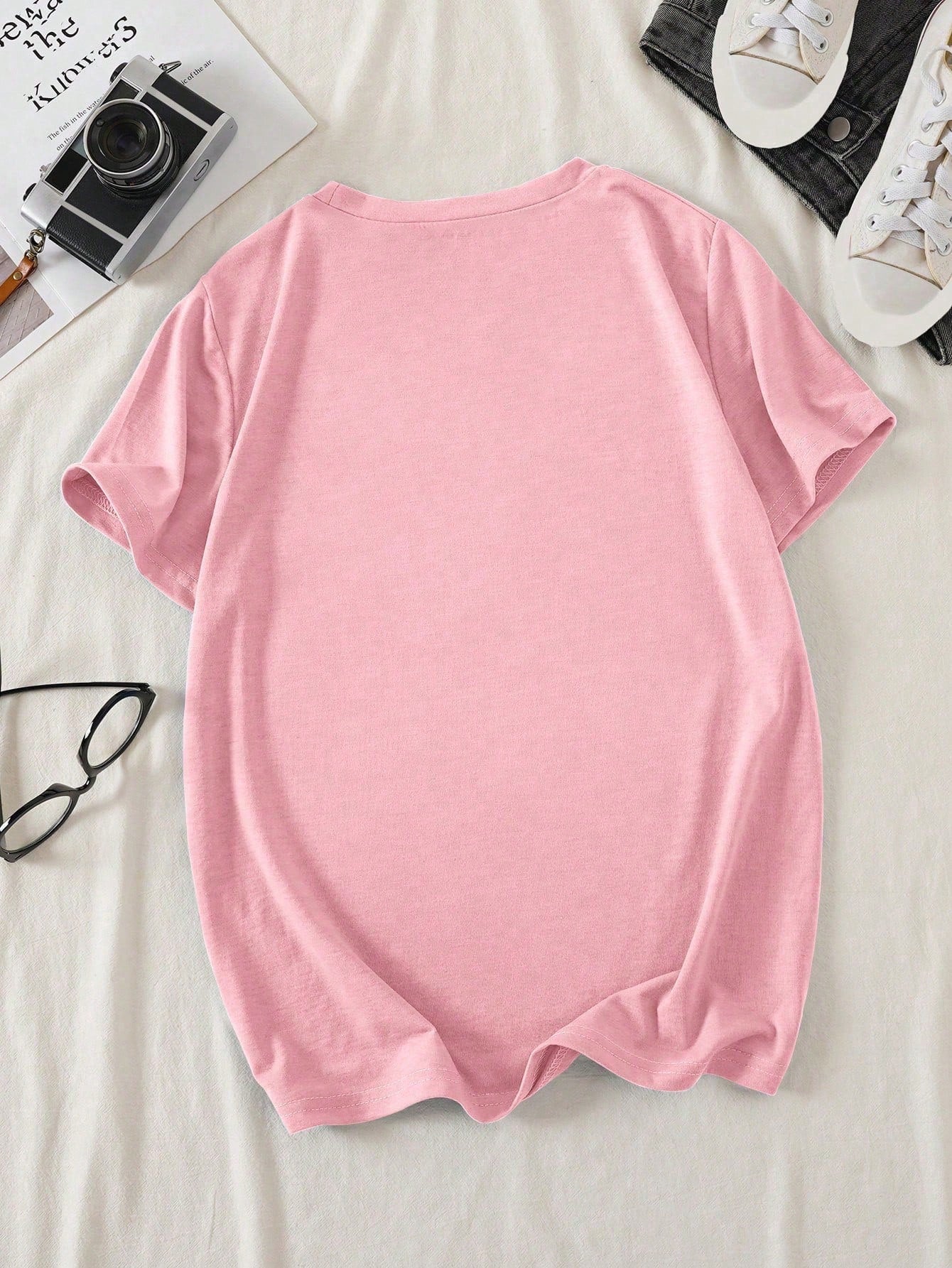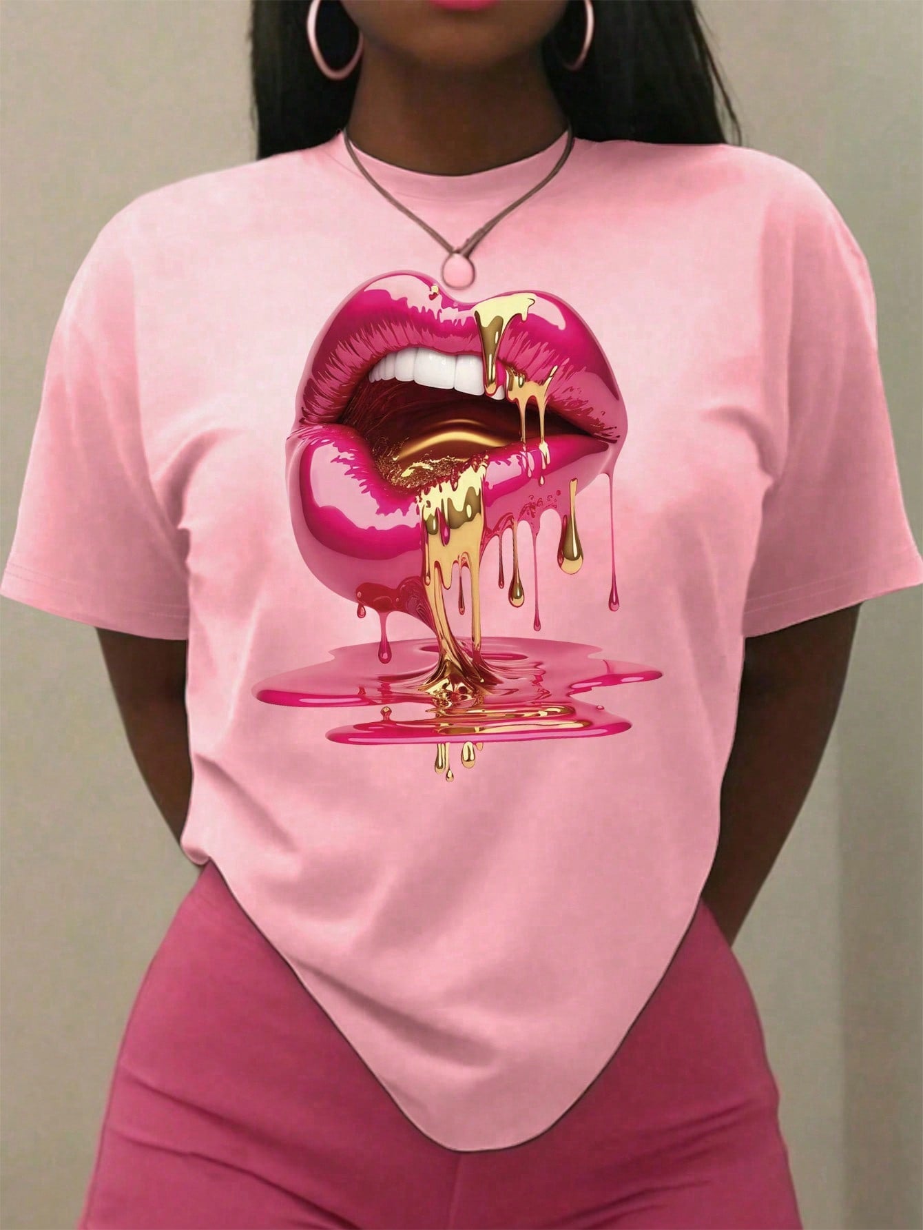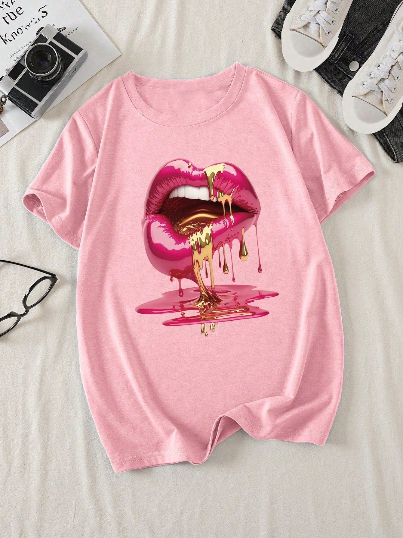 VaVaLuxe Women Round Neck Short Sleeve T-Shirt, Casual Lip Print, Spring/Summer