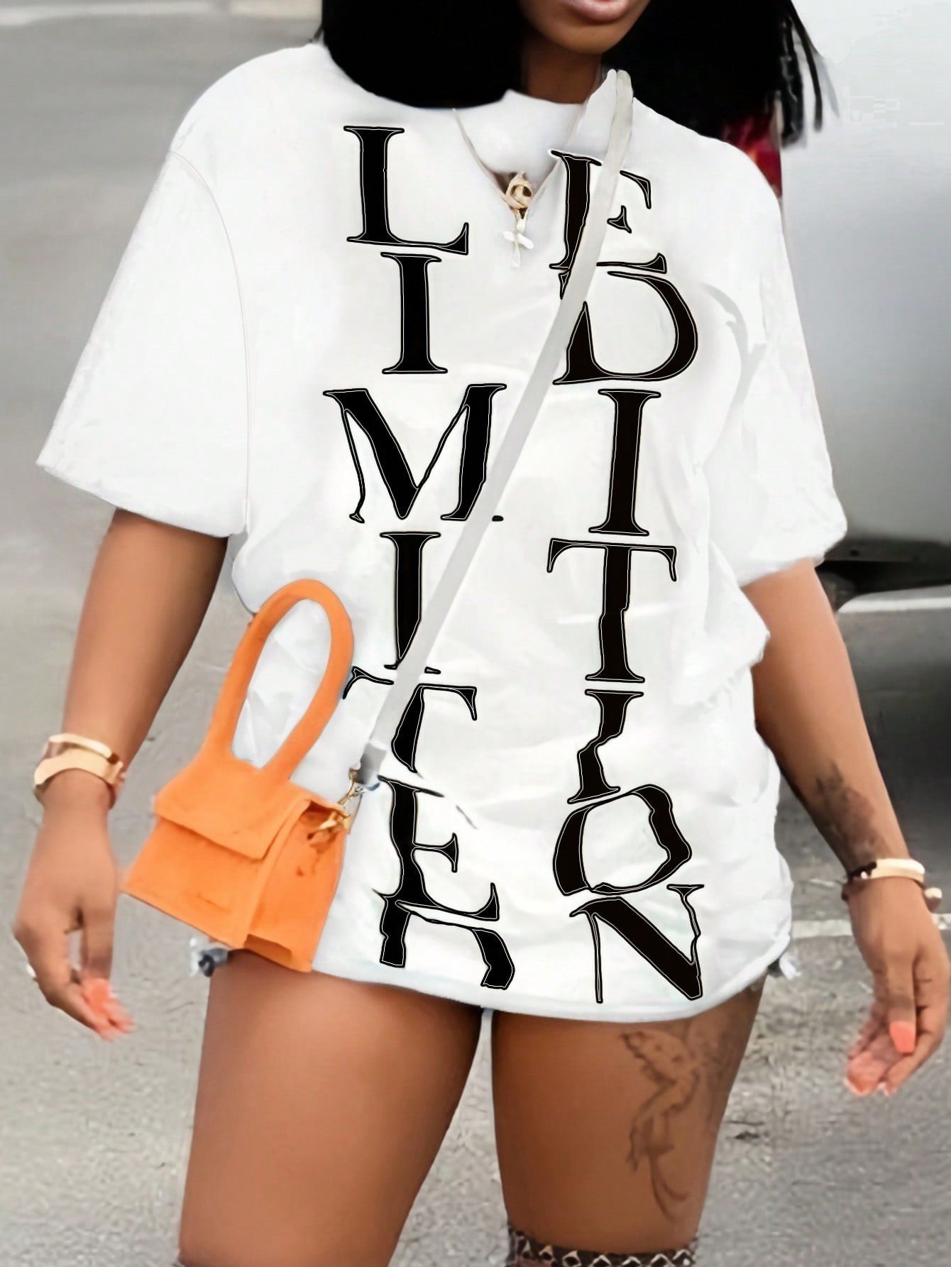 VaVaLuxe Women's Fashion - Soft, Breathable, Moisture Absorbing Polyester Loose Casual Short Sleeve T-Shirt With Letter Printing