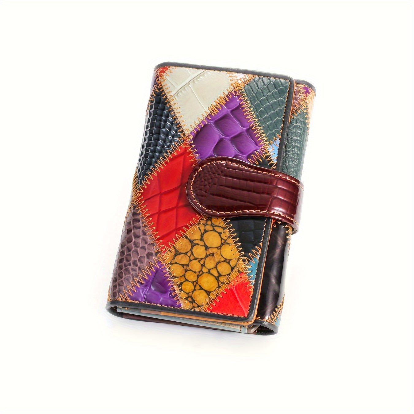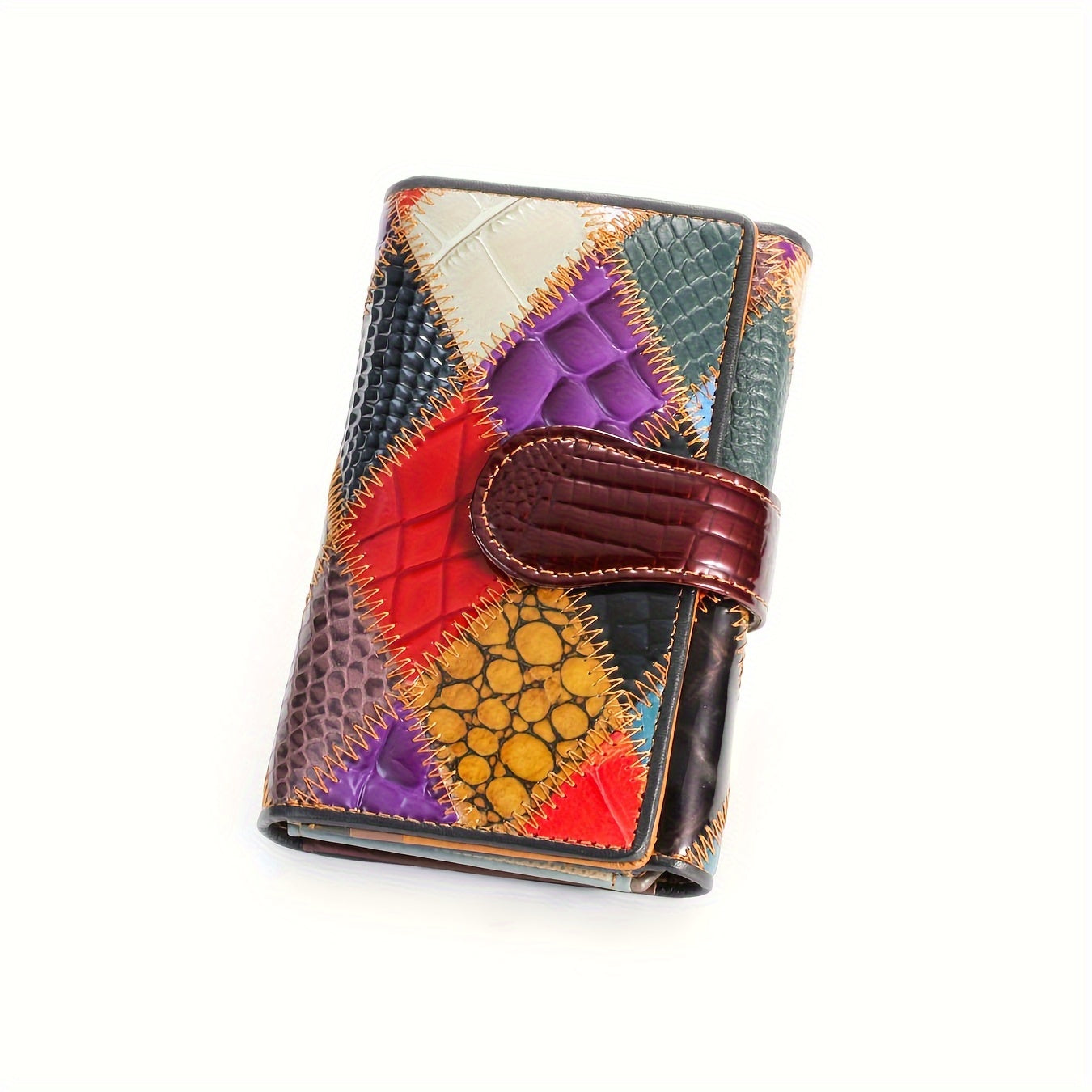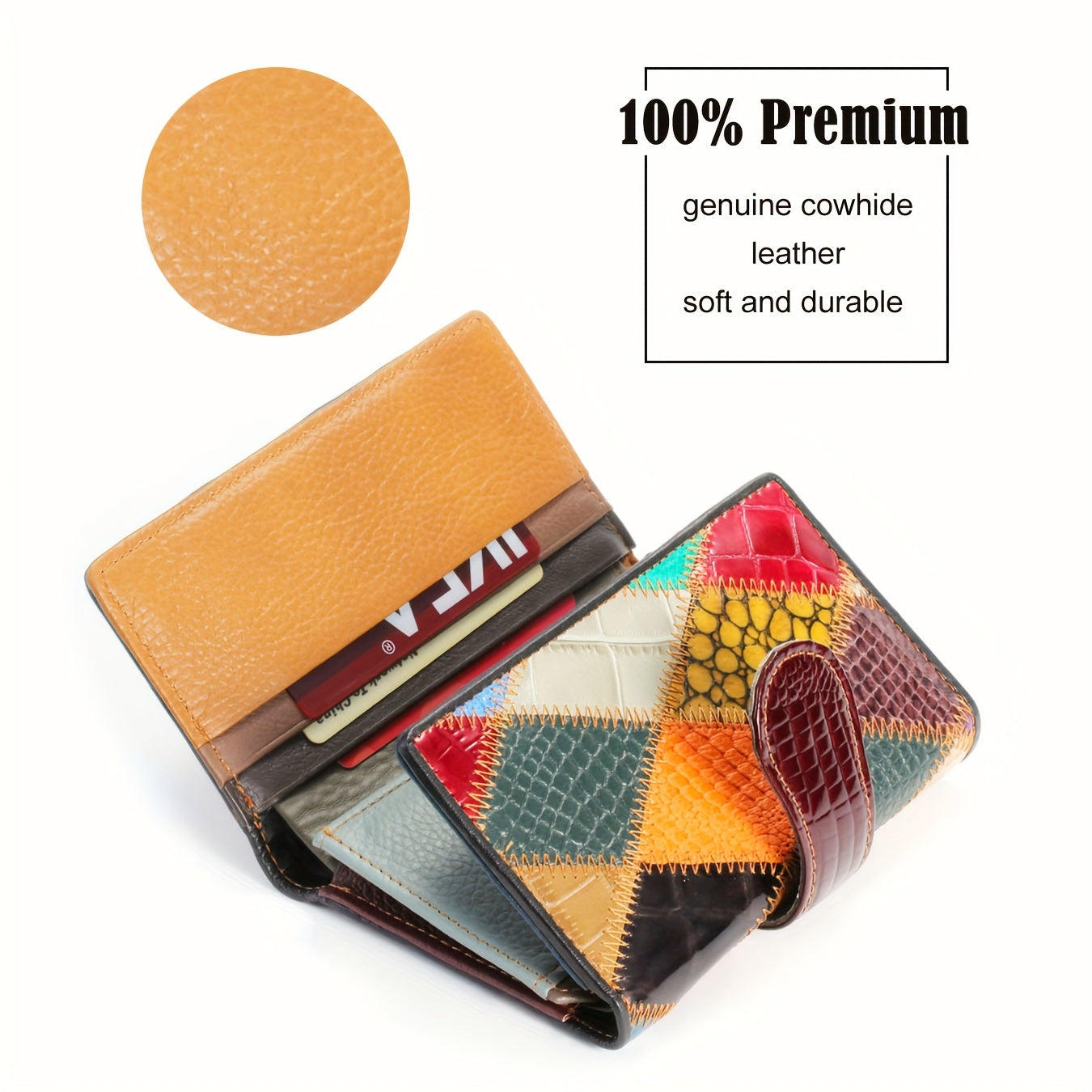 Vibrant Patchwork Genuine Leather Women’s Wallet – Handcrafted, Multi-Card Holder with Coin Purse, Unique Retro Style, Random Colors, Perfect Gift for Her, Cute Wallet