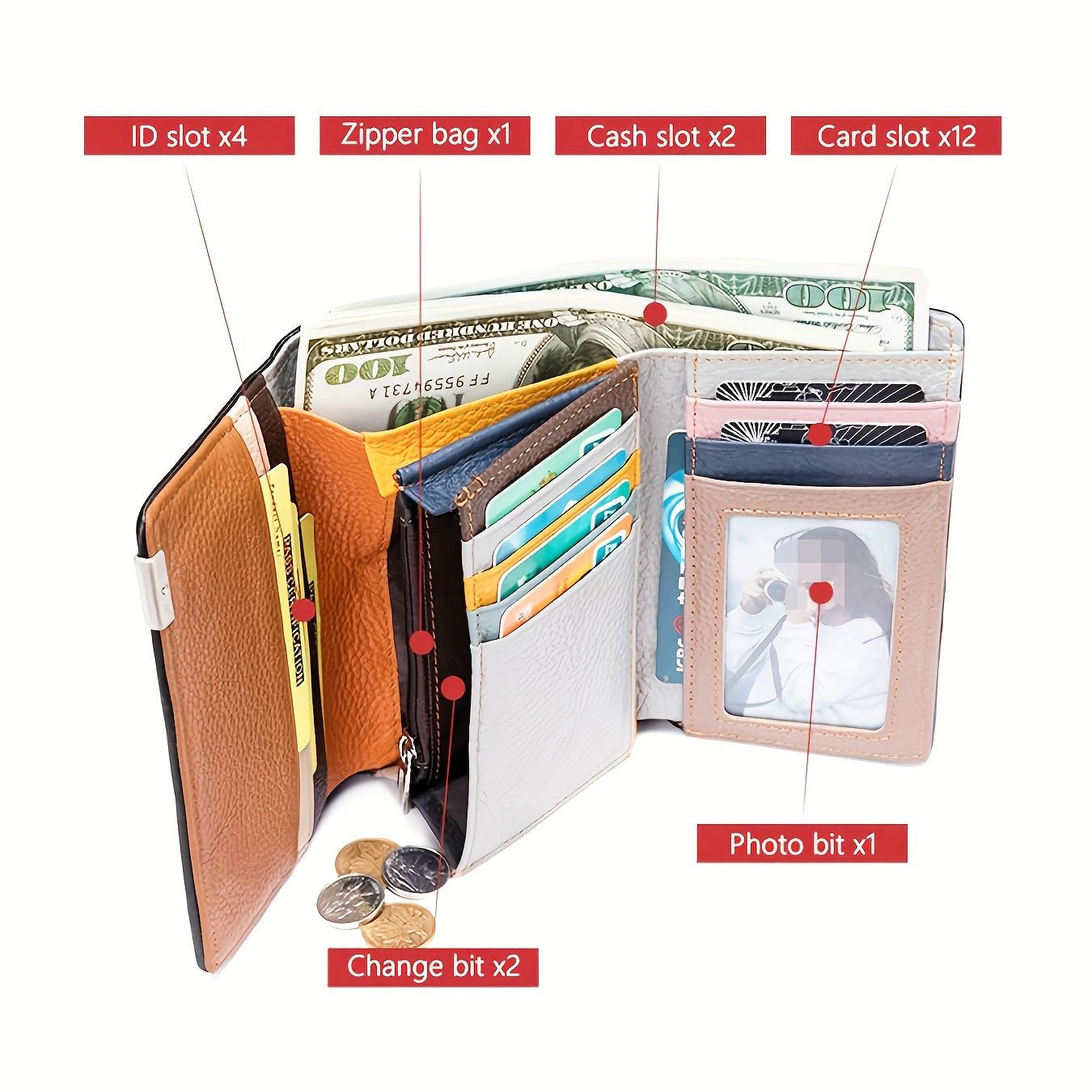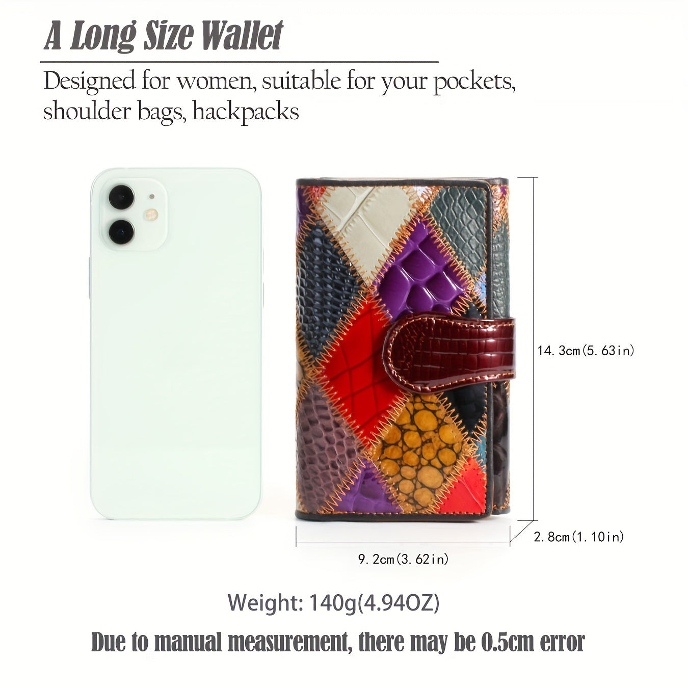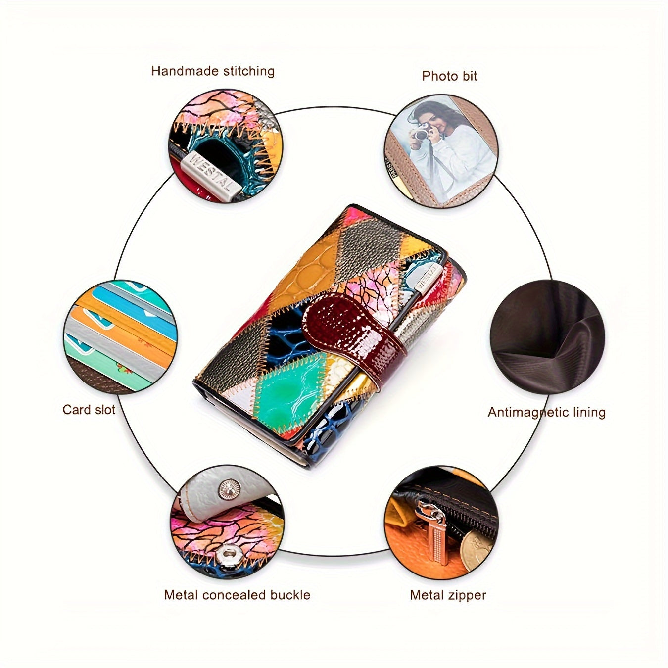 Vibrant Patchwork Genuine Leather Women’s Wallet – Handcrafted, Multi-Card Holder with Coin Purse, Unique Retro Style, Random Colors, Perfect Gift for Her, Cute Wallet