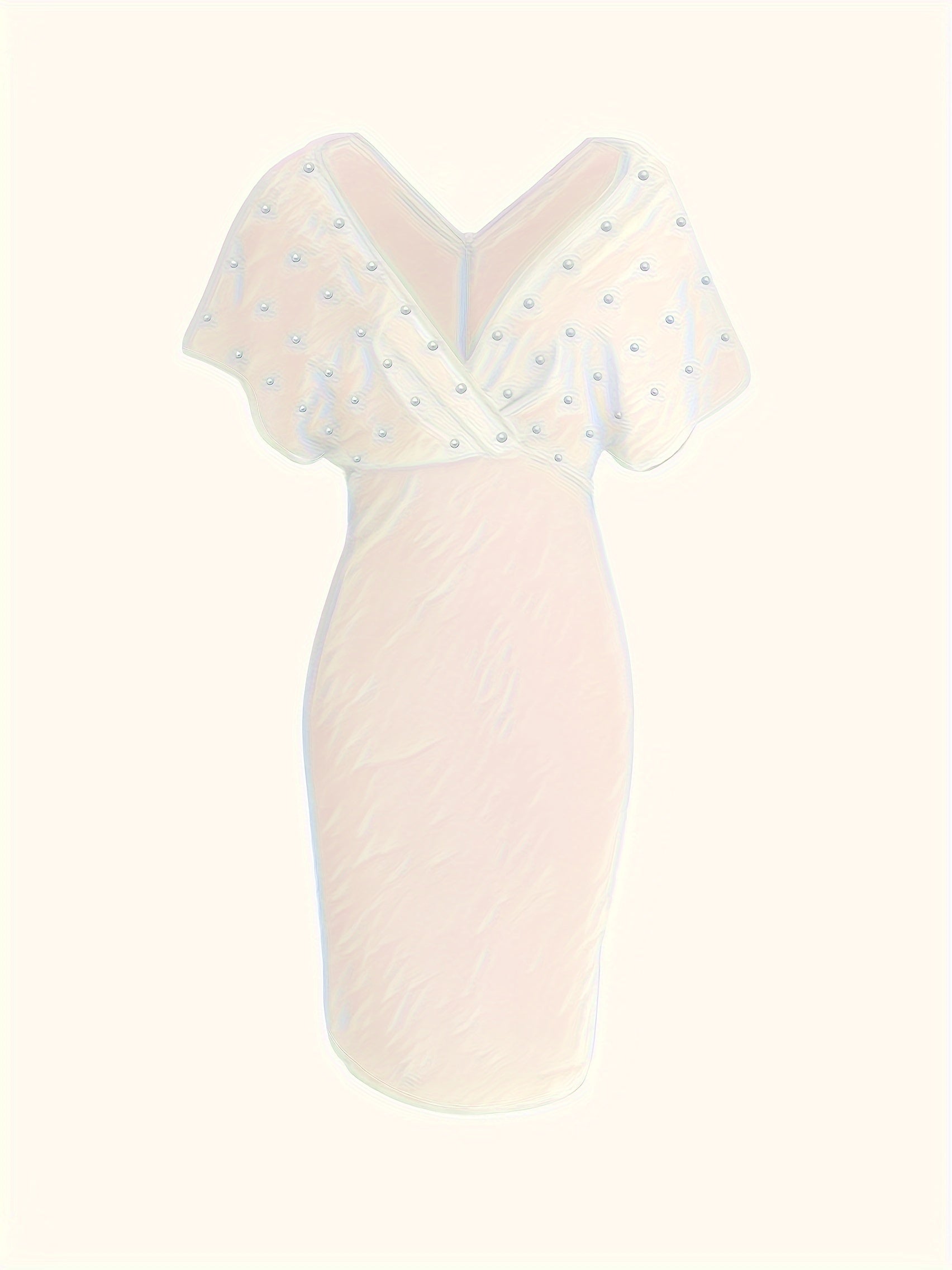 Vibrant Pearl Embellished Bodycon Dress - Elegant V Neck Short Sleeve Party Dress for Women - Cinched Waist, Figure-Hugging, Flattering, Formal Wear for Banquet, Wedding, and Special Occasions