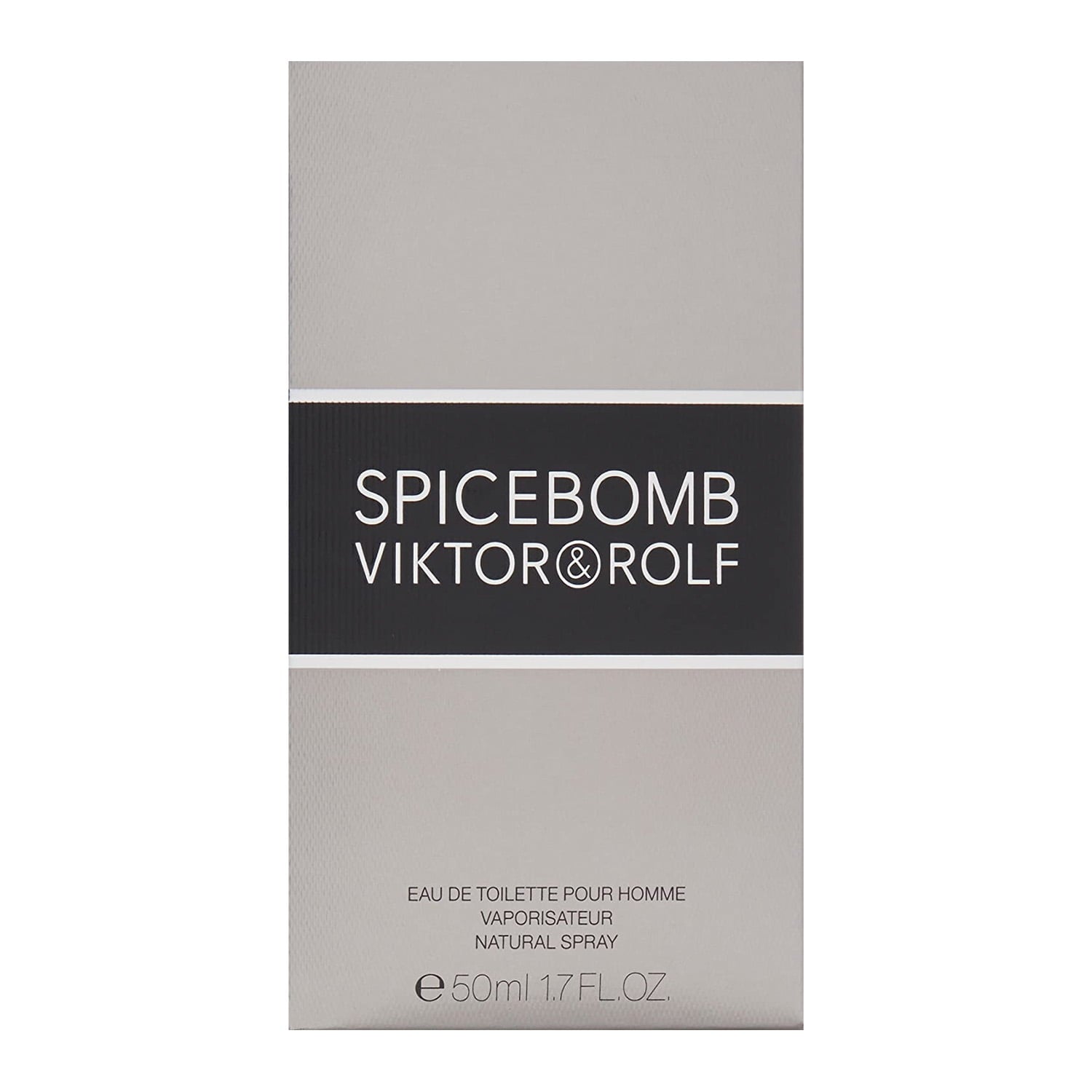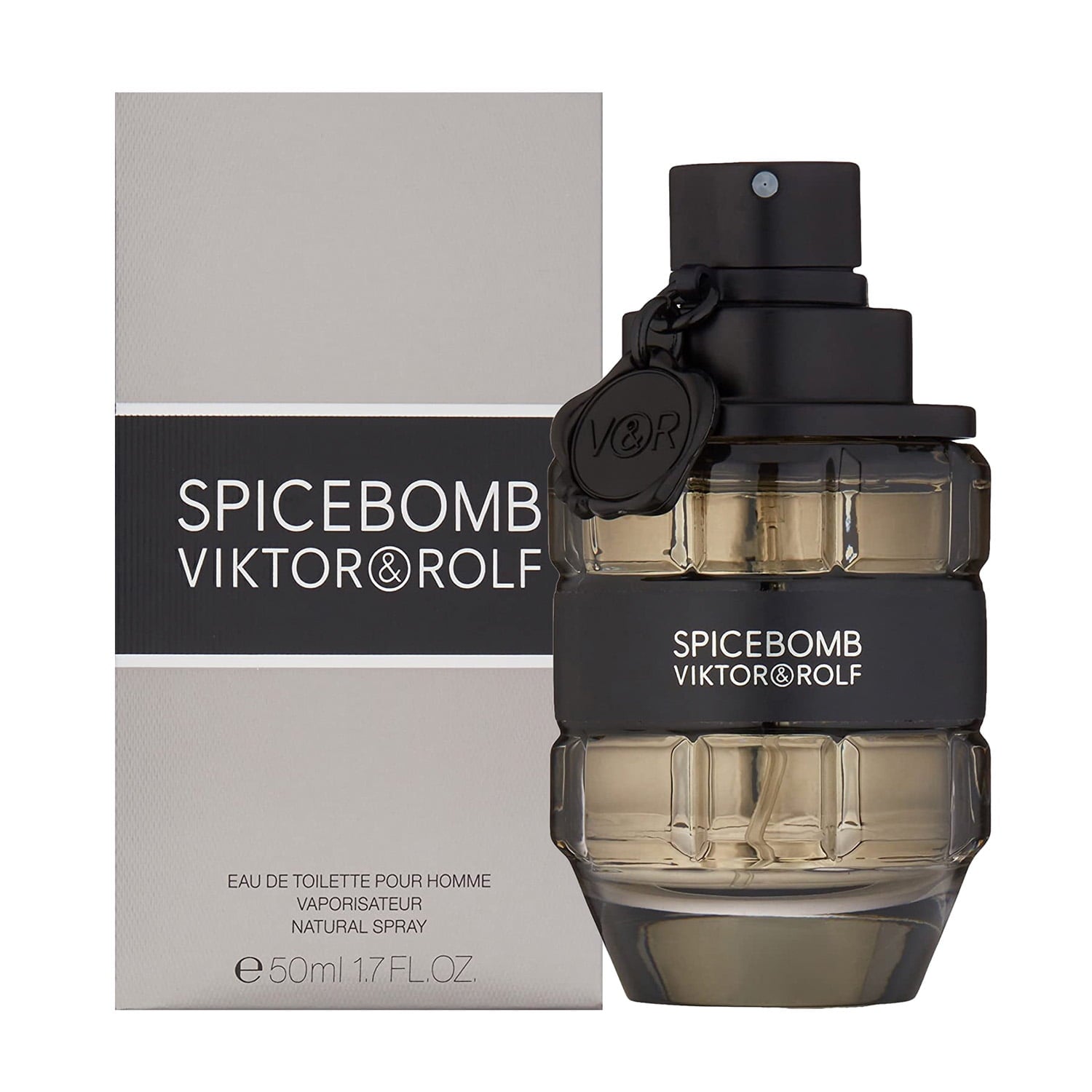 Viktor & Rolf Spicebomb Eau De Toilette, Cologne for Men, 1.7 Oz Viktor and Rolf Spicebomb Eau De Toilette is a spicy, woodsy scent created in 2012 based off of their bestselling feminine perfume Flowerbomb. A superb male challenge to the feminine fragrance called flowerbomb that had been brought out by the same brand. Deep, intriguing and commanding, the fragrance brings out the male adventurer in you. At once chilly and heated, you can well imagine yourself bathing in the heat of a sauna or sliding down an icy waterfall. It opens up with juicy grapefruit, bergamot and spicy pink pepper. More spices come into play at the center of the fragrance, with notes of cinnamon, paprika and saffron. A masculine scent notes base of tobacco, vetiver and leather is sexy and seductive.
