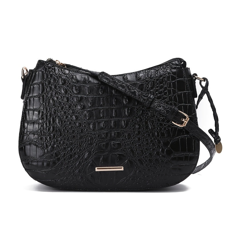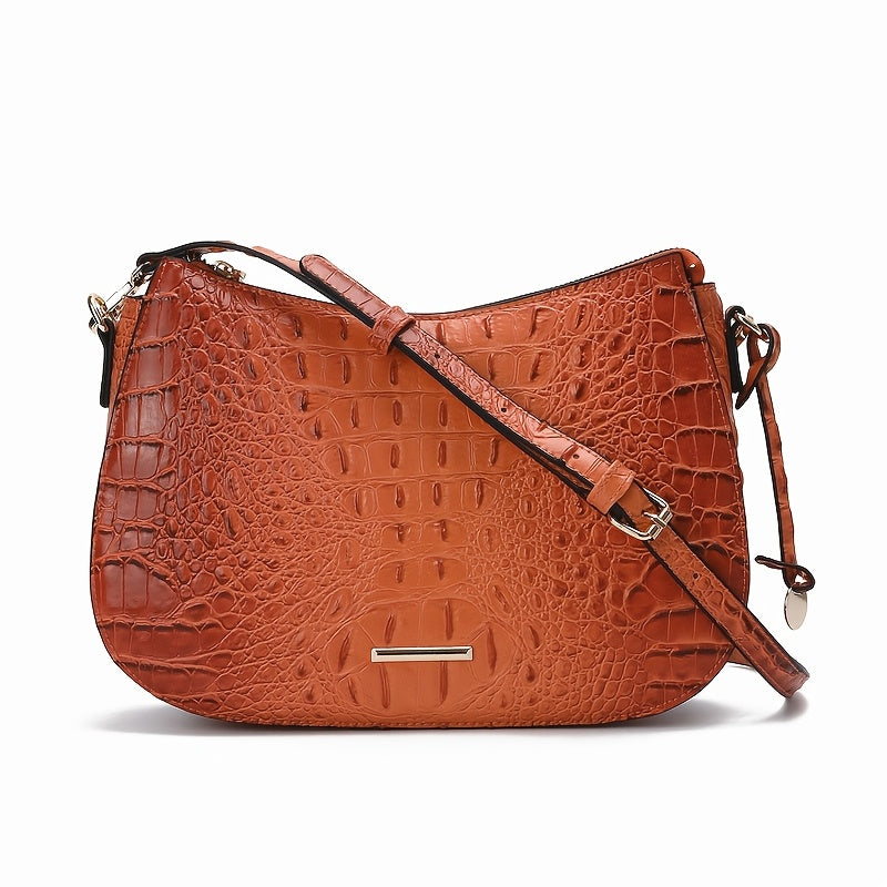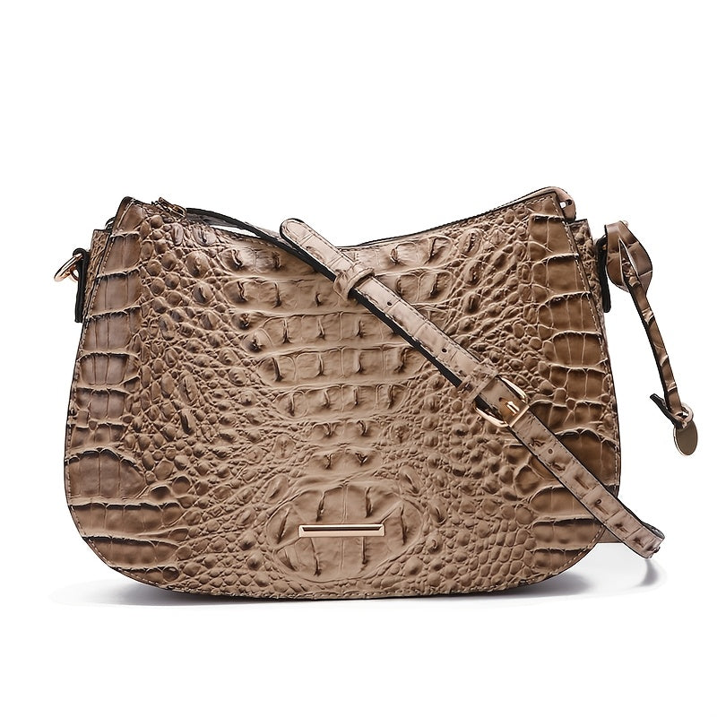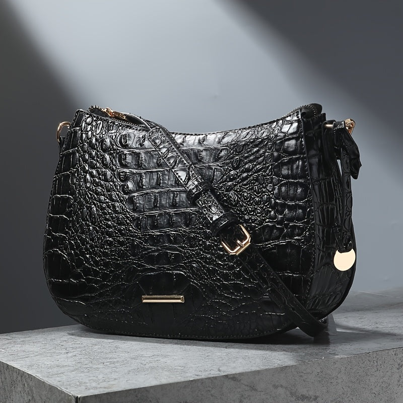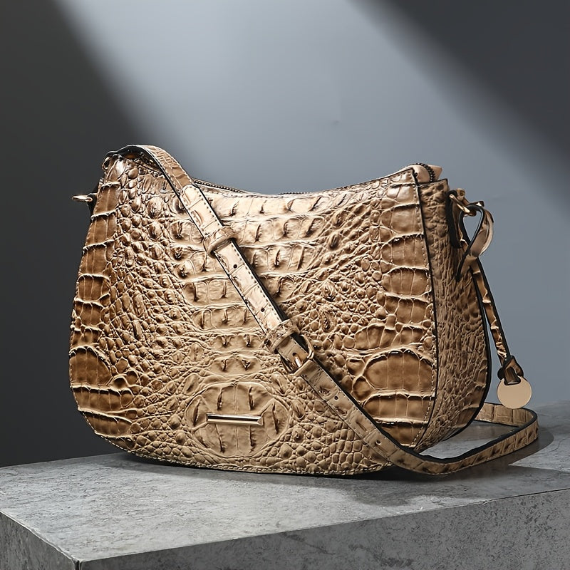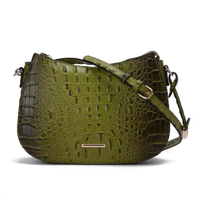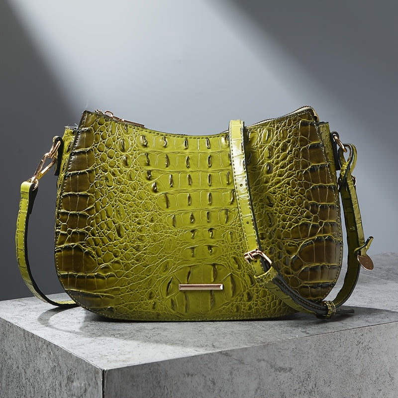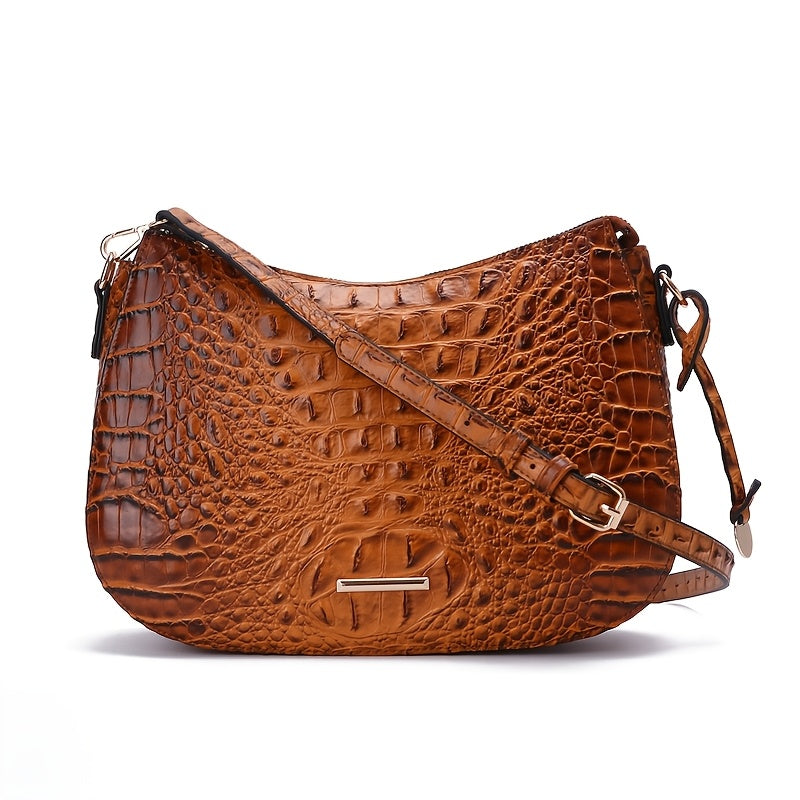 [Vintage Crossbody Bag] Vintage-Inspired Red Crossbody Bag for Women - Glossy Finish, Adjustable Strap, Spacious Shoulder Purse with Metallic Clasp and Zipper Closure, Crocodile Pattern