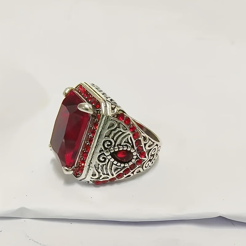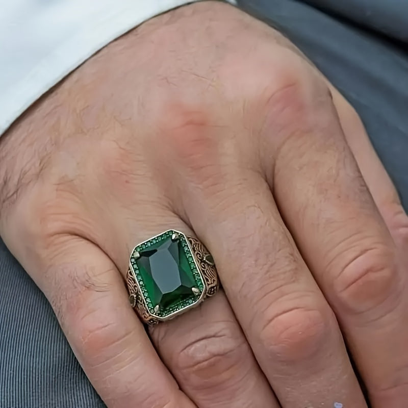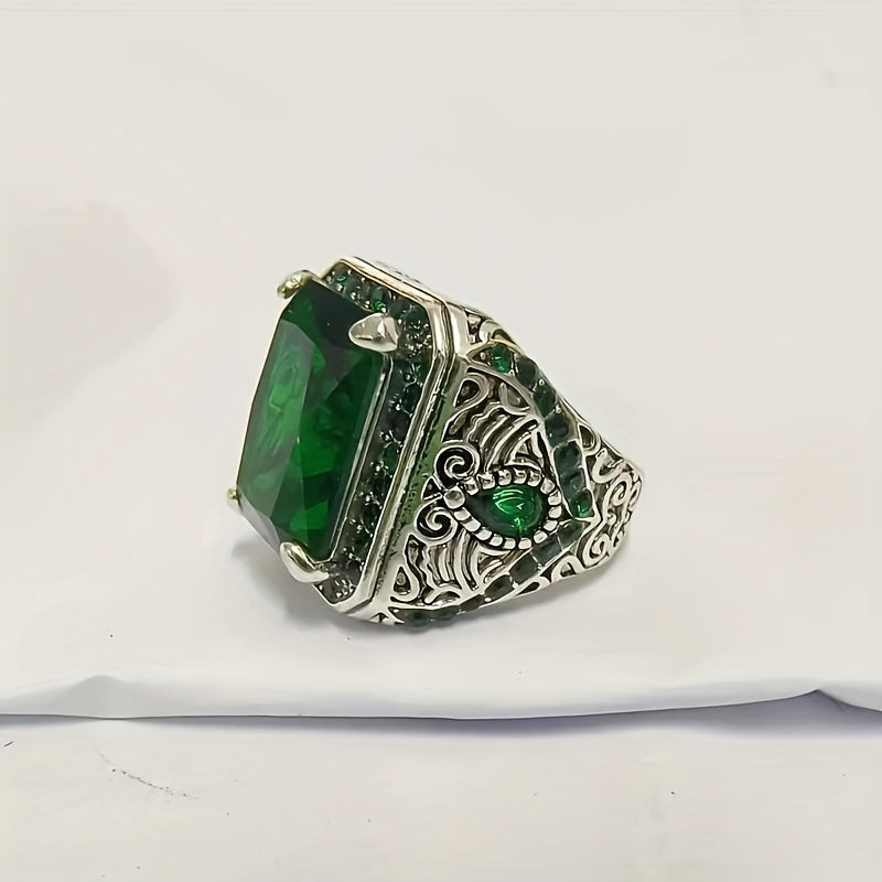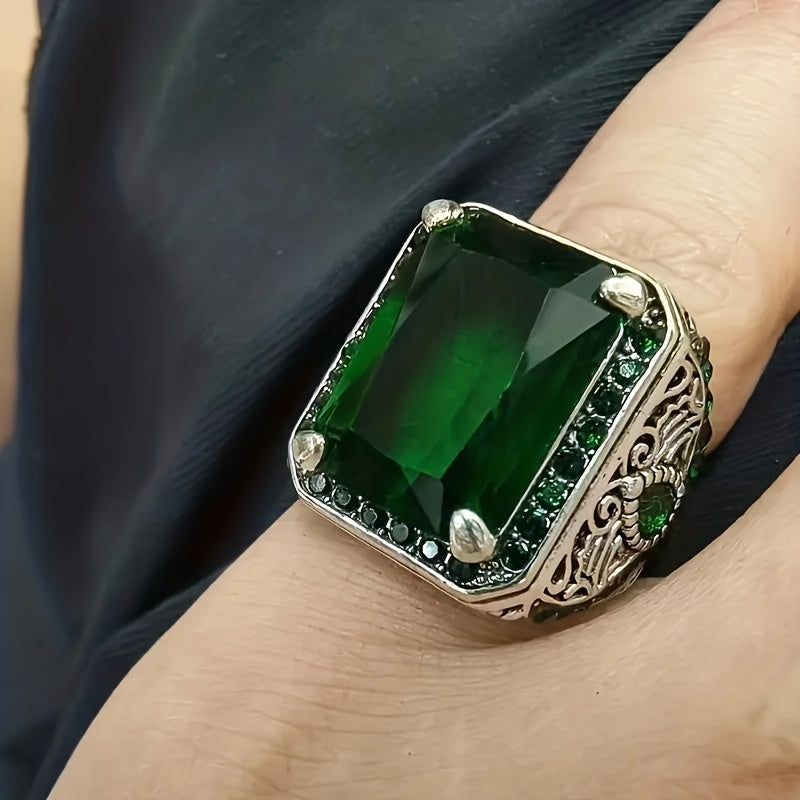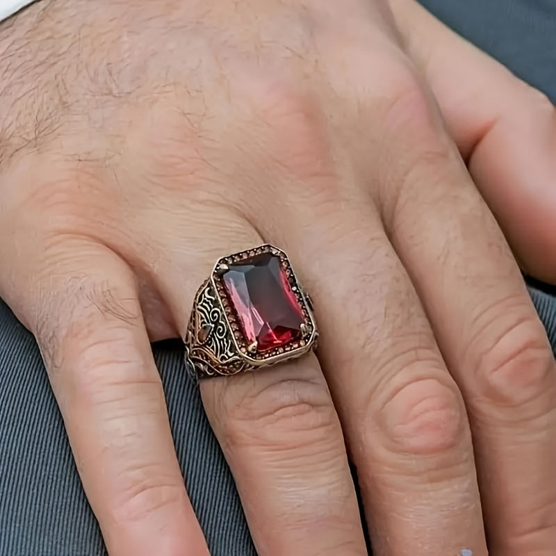 Vintage Luxury Men's Red & Green Synthetic Zirconia Ring - Elegant Engagement and Anniversary Gift, Two Styles, Sizes 7-13