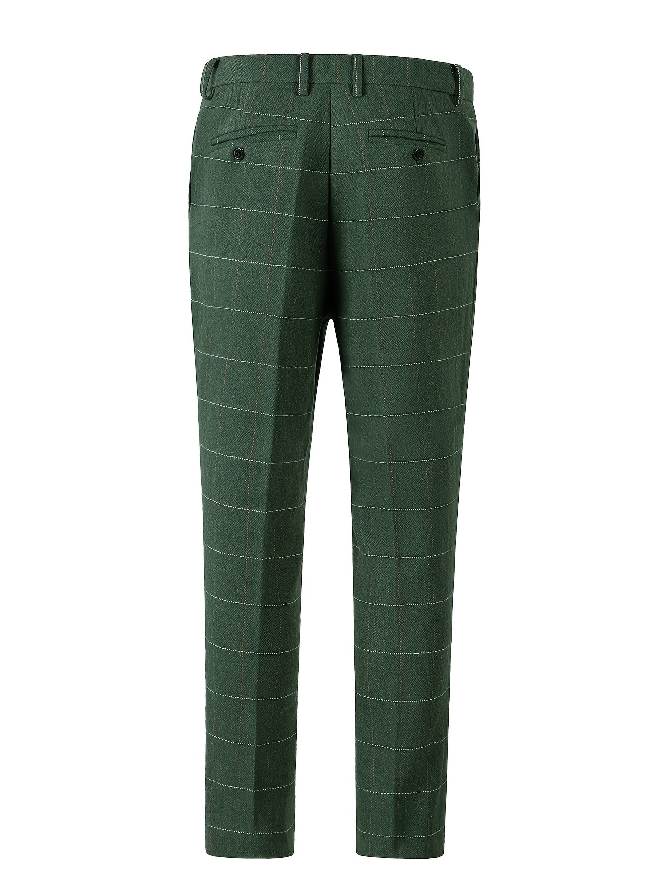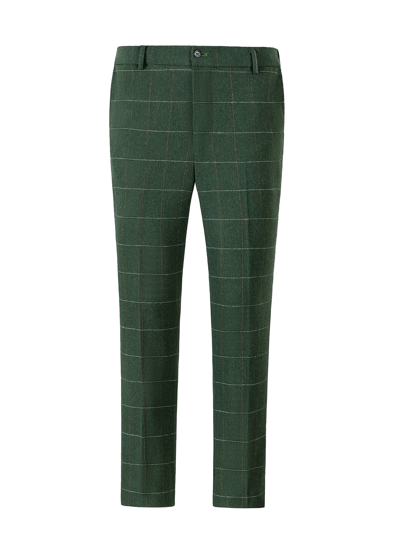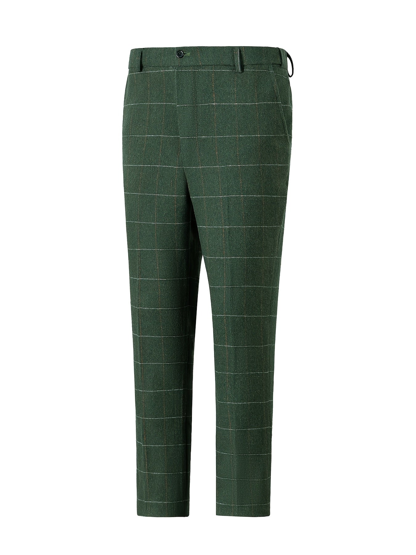 Vintage Style Wool Blend Plaid Dress Pants - Mid Waist Regular Fit with Zipper Fly and Pocket Detail - Slight Stretch Fabric for All-Season Formal Business Casual Trousers