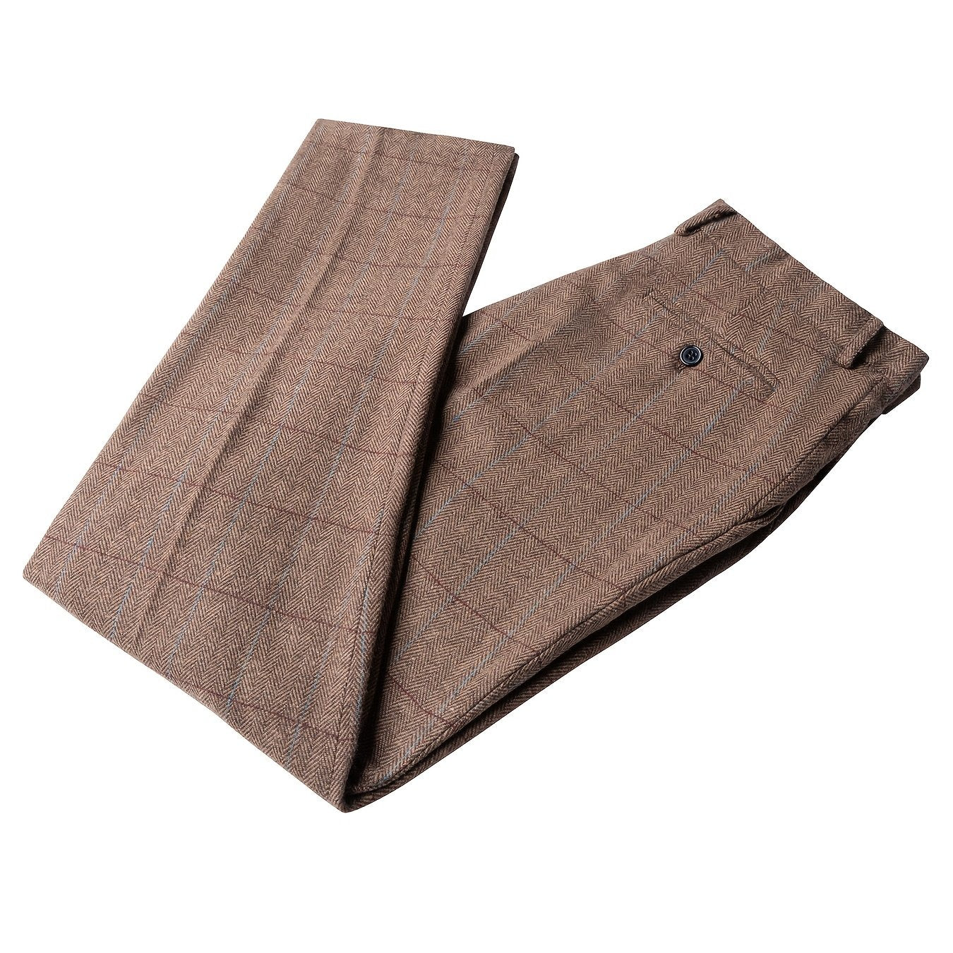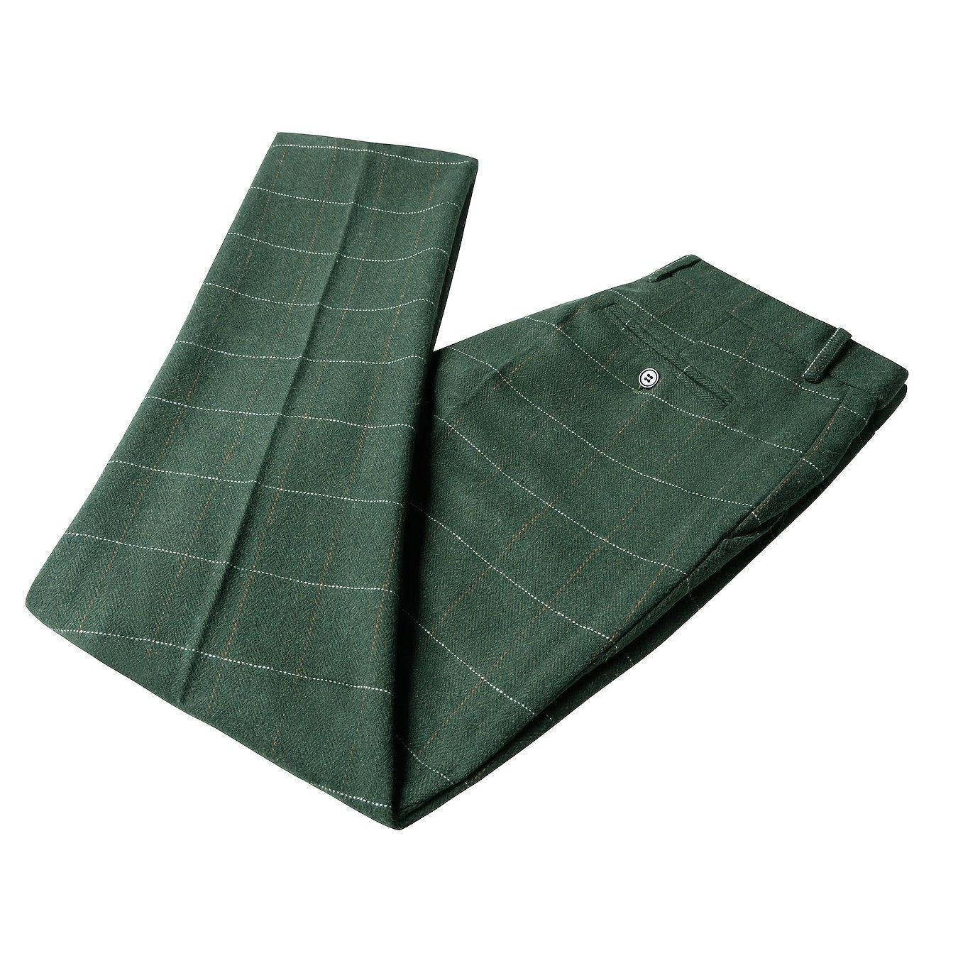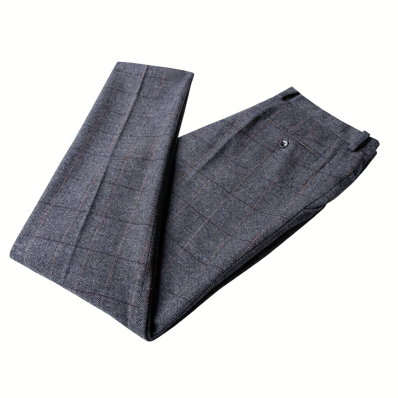 Vintage Style Wool Blend Plaid Dress Pants - Mid Waist Regular Fit with Zipper Fly and Pocket Detail - Slight Stretch Fabric for All-Season Formal Business Casual Trousers