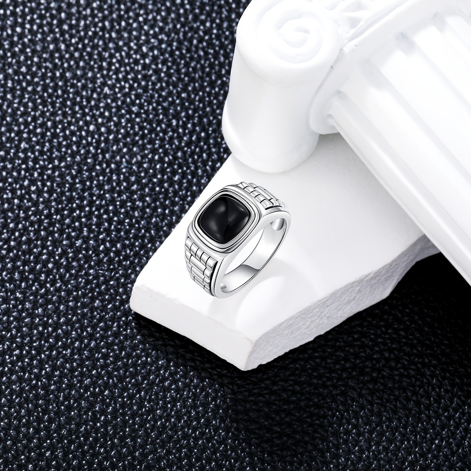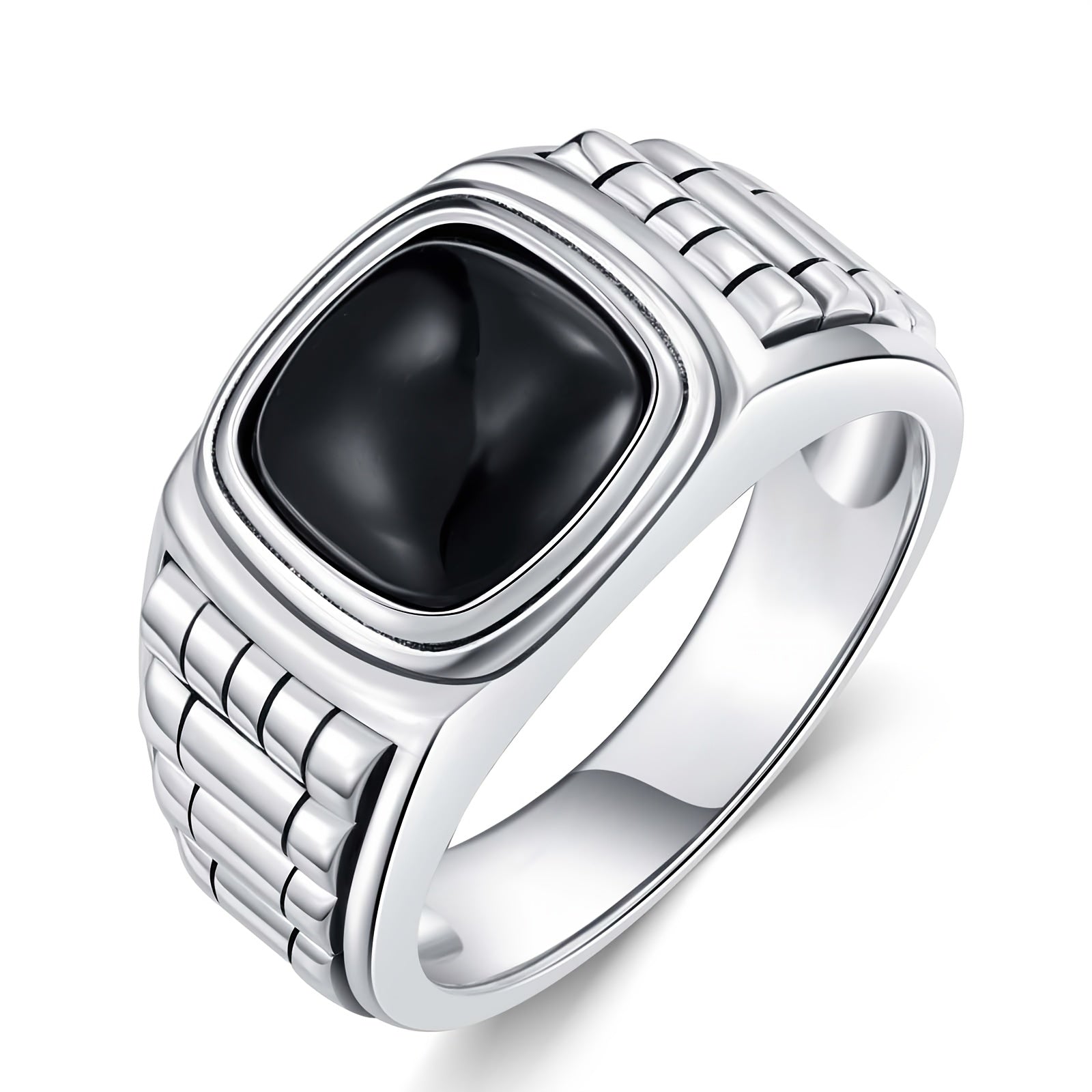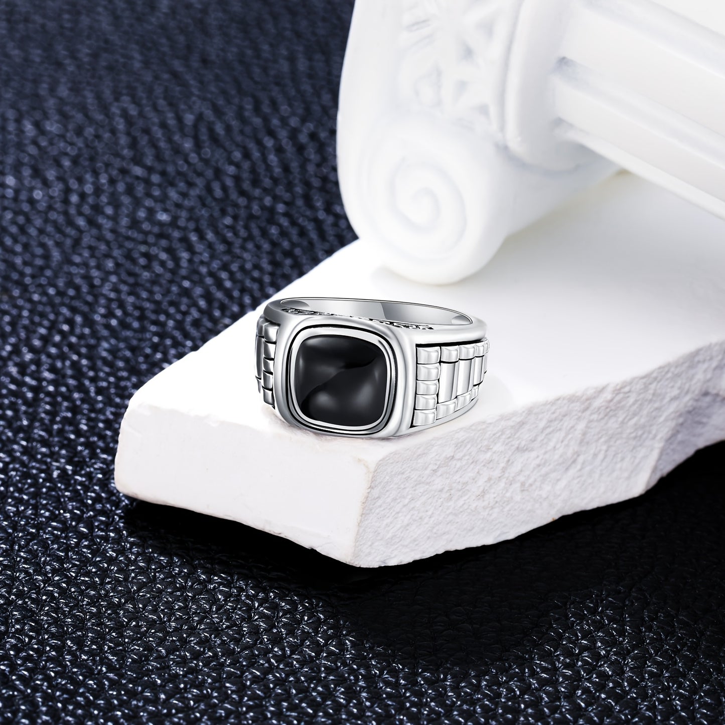 Vintage Synthetic Black Onyx Ring for Men S925 Sterling 925 Silver Plated Handmade Statement Ring Jewelry for Onyx Lover