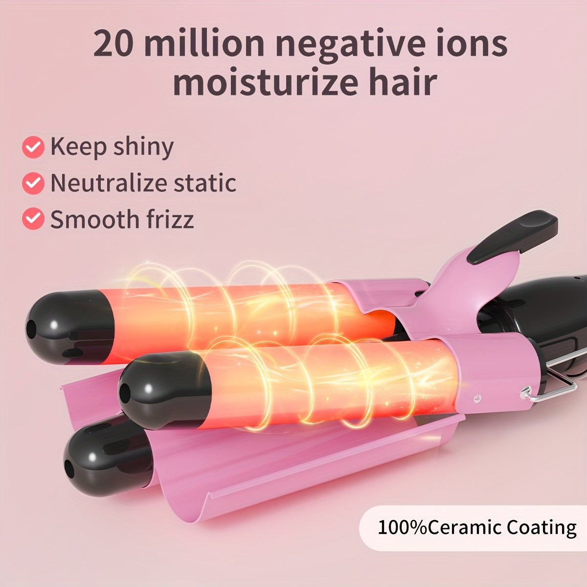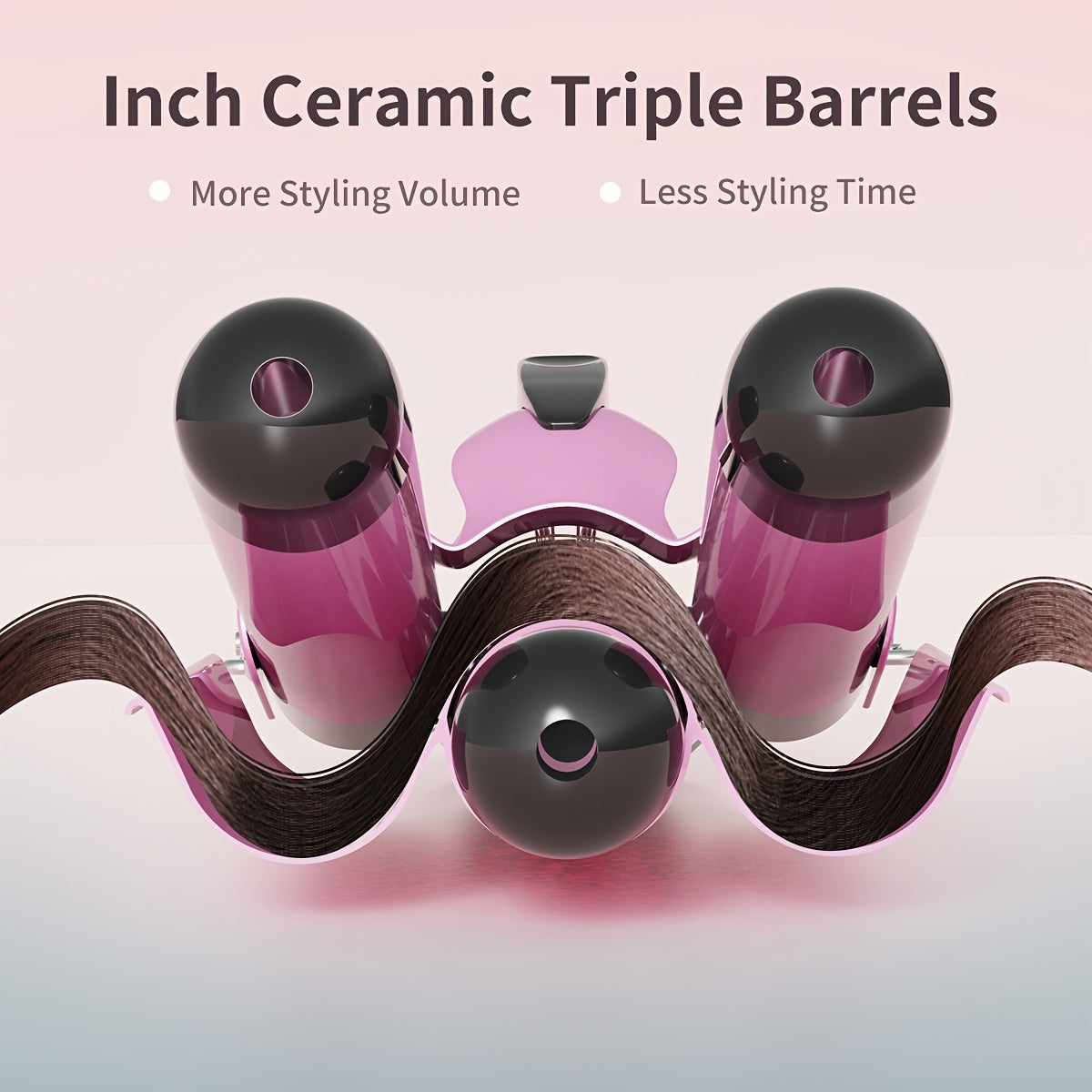 [Volumizing Curler] Sleek 3-Barrel Professional Hair Curling Iron Wand - Ergonomic Grip, Adjustable Temperature Control, Volumizing & Anti-Scald, Ideal for All Hair Types - Black & Orange, US Plug, Hair Curler