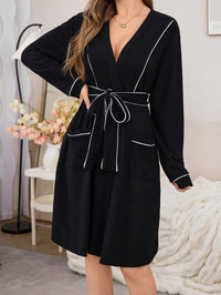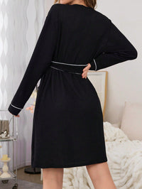 Waffle-Knit Contrast Trim Stylish & Personality Loungewear Bathrobe