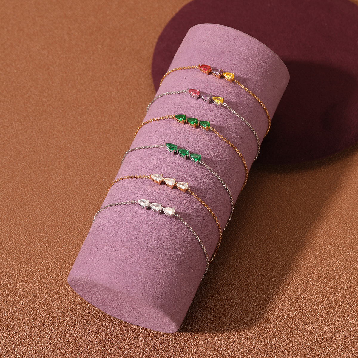 Water Drop Zircon Titanium Steel Bracelet Women Simple Colorful Crystals Personality Stainless Steel Bracelet