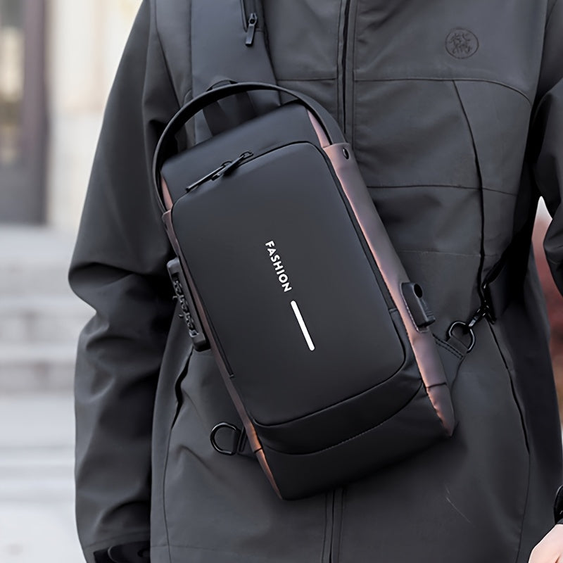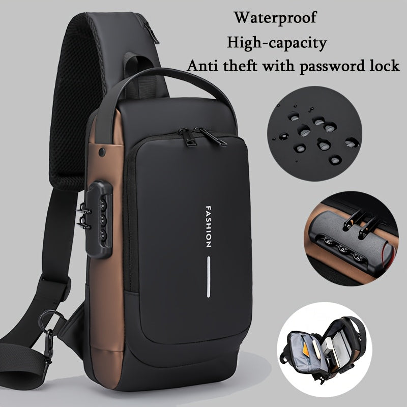 Waterproof Anti-Theft Crossbody Bag - 1pc Men's Casual Style with Password Lock, Adjustable Strap, Multi-Compartment - Random Print Design for Daily Commute and City Hiking