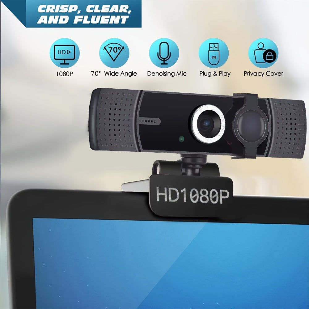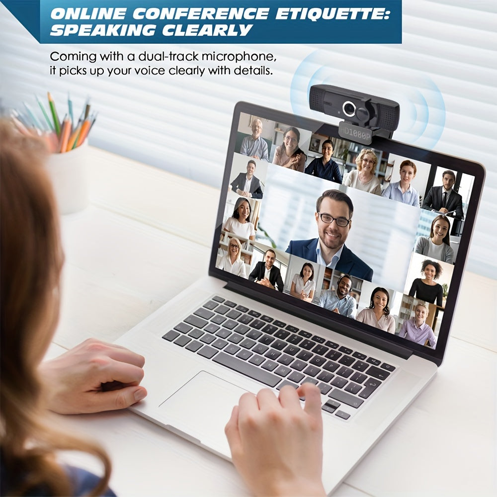 Webcam avec microphone, webcam 1080P FHD avec cache de confidentialité, webcam Plug and Play pour ordinateur de bureau et ordinateur portable.