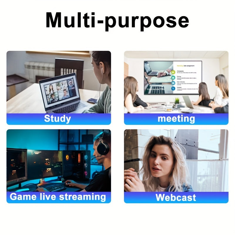 Webcam Full HD 1080P avec Microphone, Caméra de Conférence USB pour Appels Vidéo, Classe et Travail - Mise au Point Automatique, Alimentée par USB