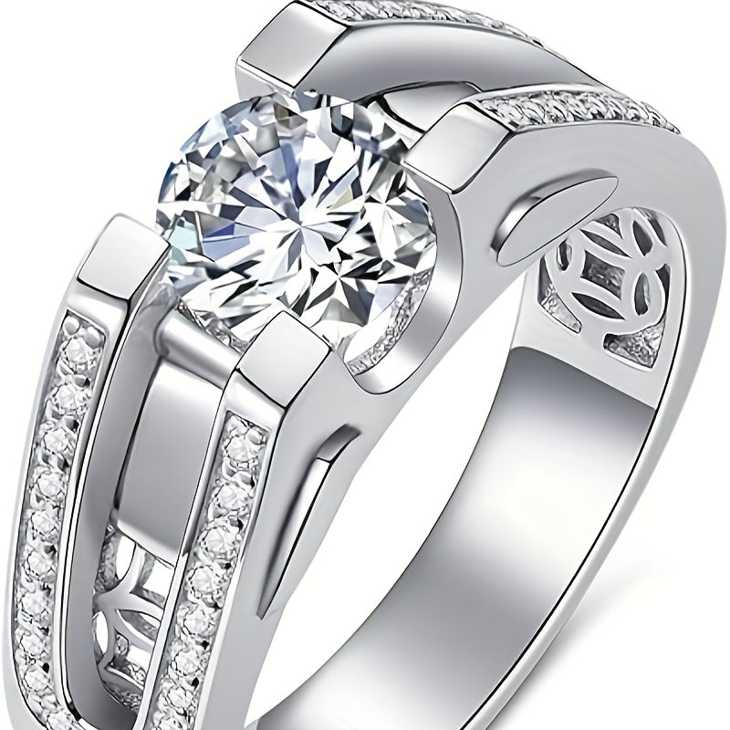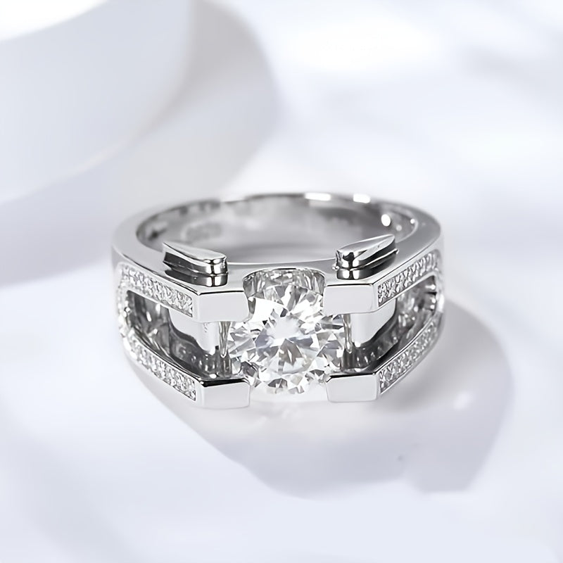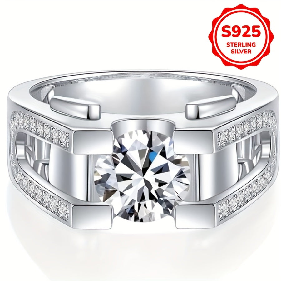 Wedding Rings For Men, Moissanite Eternity Engagement Band Brilliant D Color VVS1 Clarity Moissanite Ring With Solid S925 Sterling Silvery