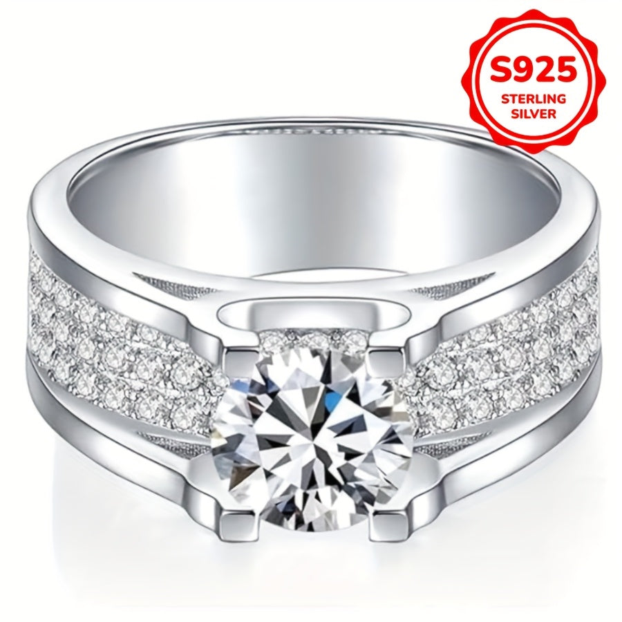 Wedding Rings For Men, Moissanite Eternity Engagement Band Brilliant D Color VVS1 Clarity Moissanite Ring With Solid S925 Sterling Silvery