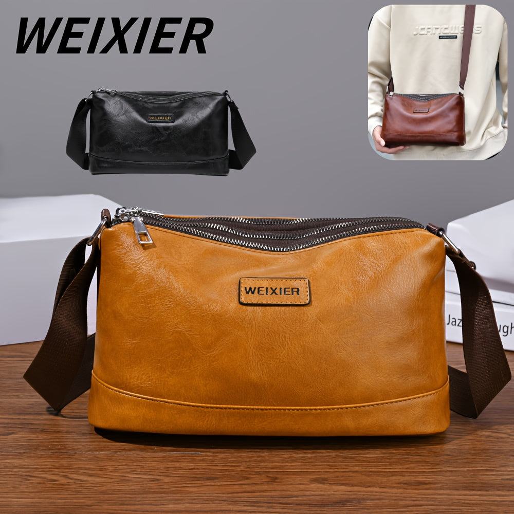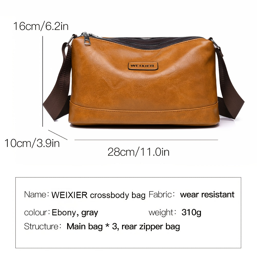 WEIXIER Vintage-Style Crossbody Bag - Large Capacity Shoulder Messenger with Adjustable Strap, Multiple Compartments, and Stylish Design for Work, School, Travel, and Gifting (Brown, Black, Dark Brown)