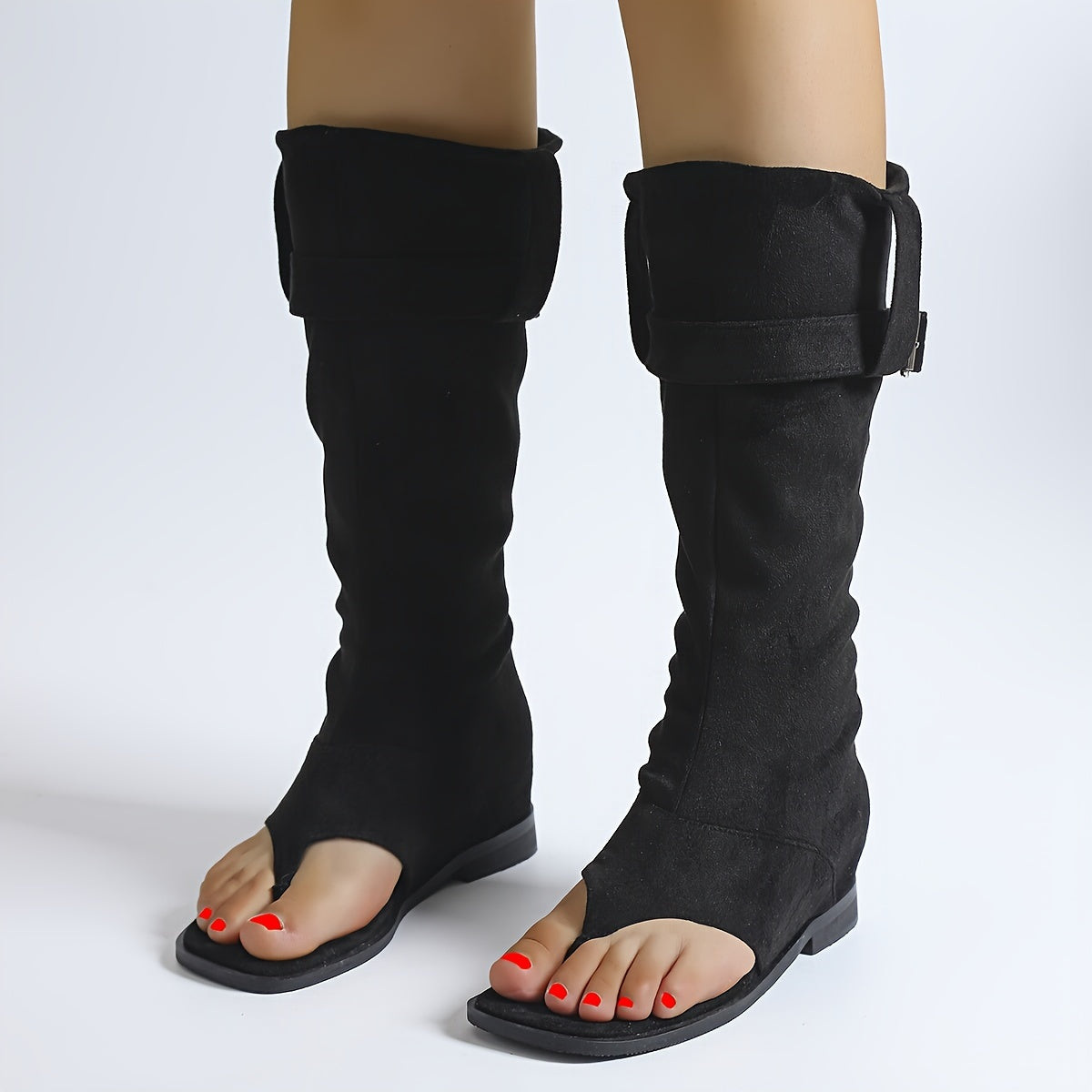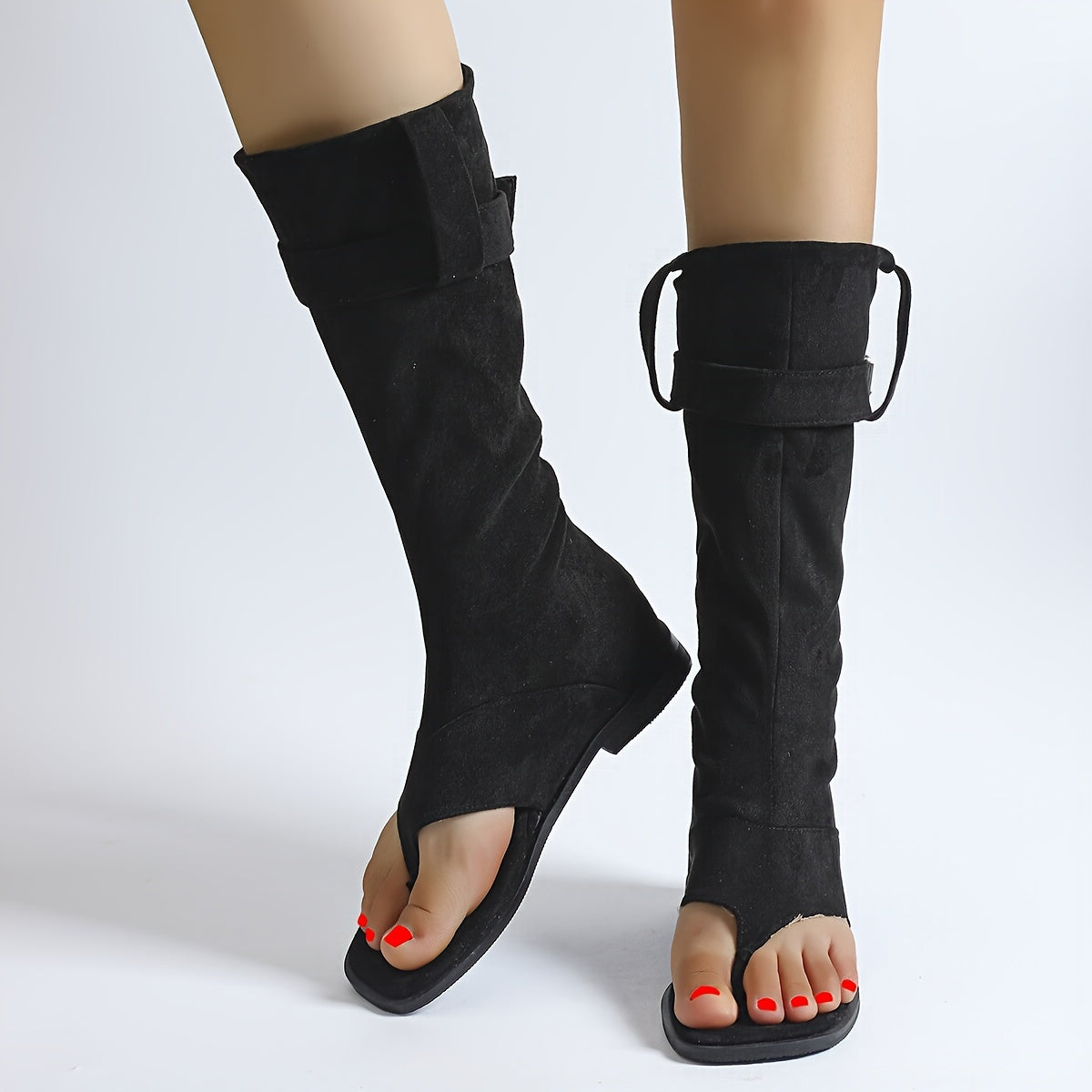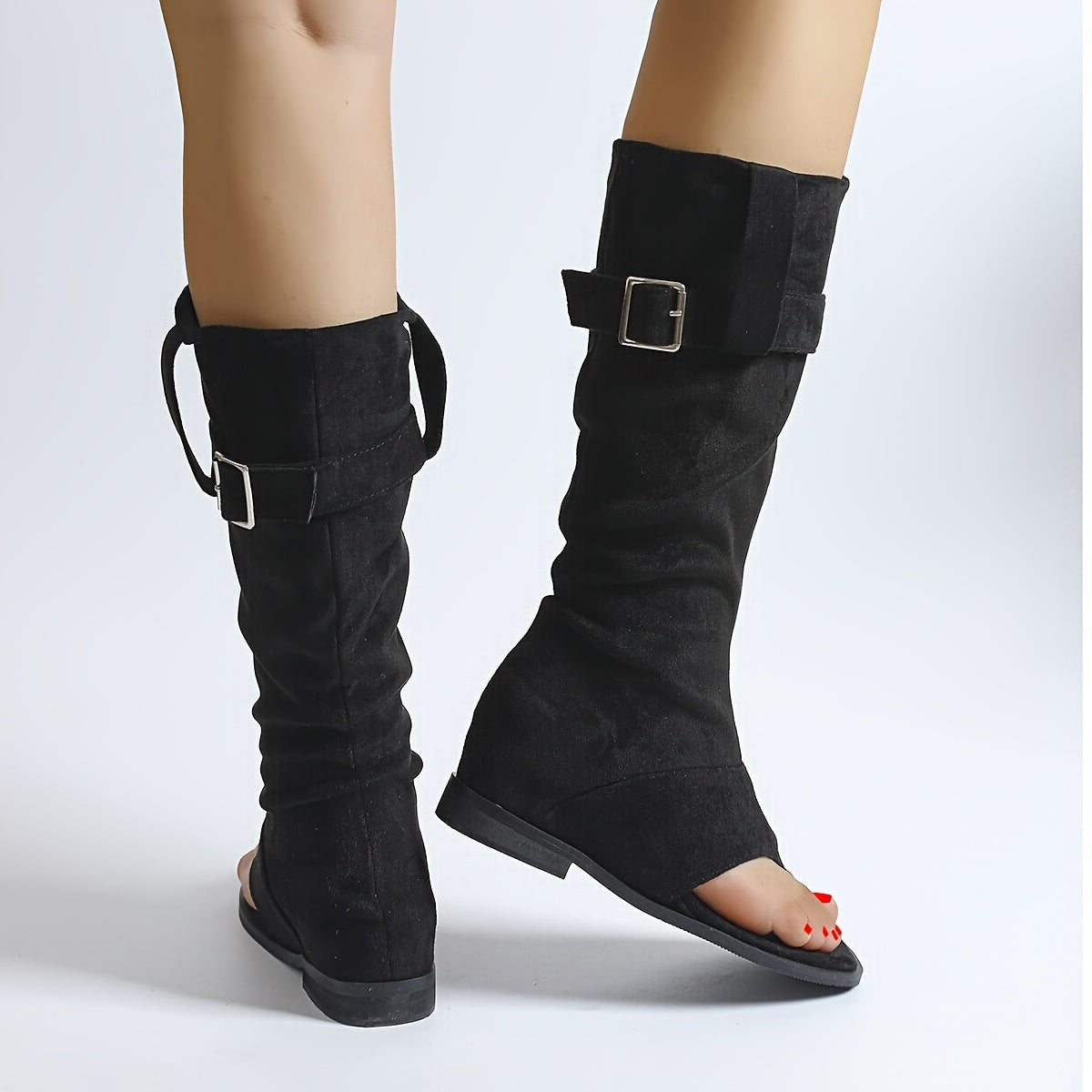 Western Cowboy Boot Sandals with Fringe and Pleated Velvet Toe for Women