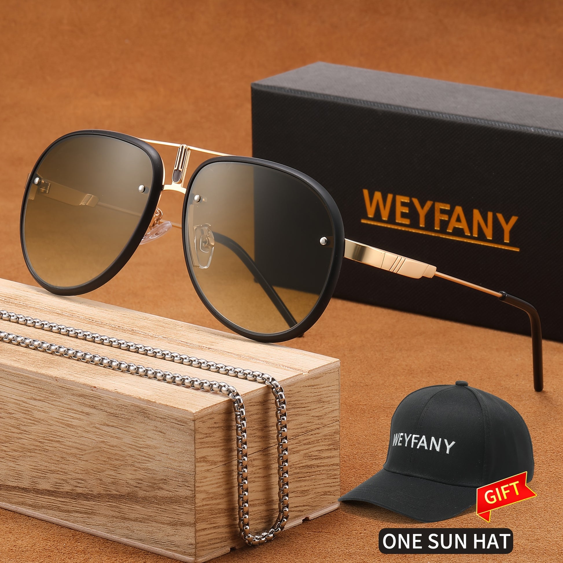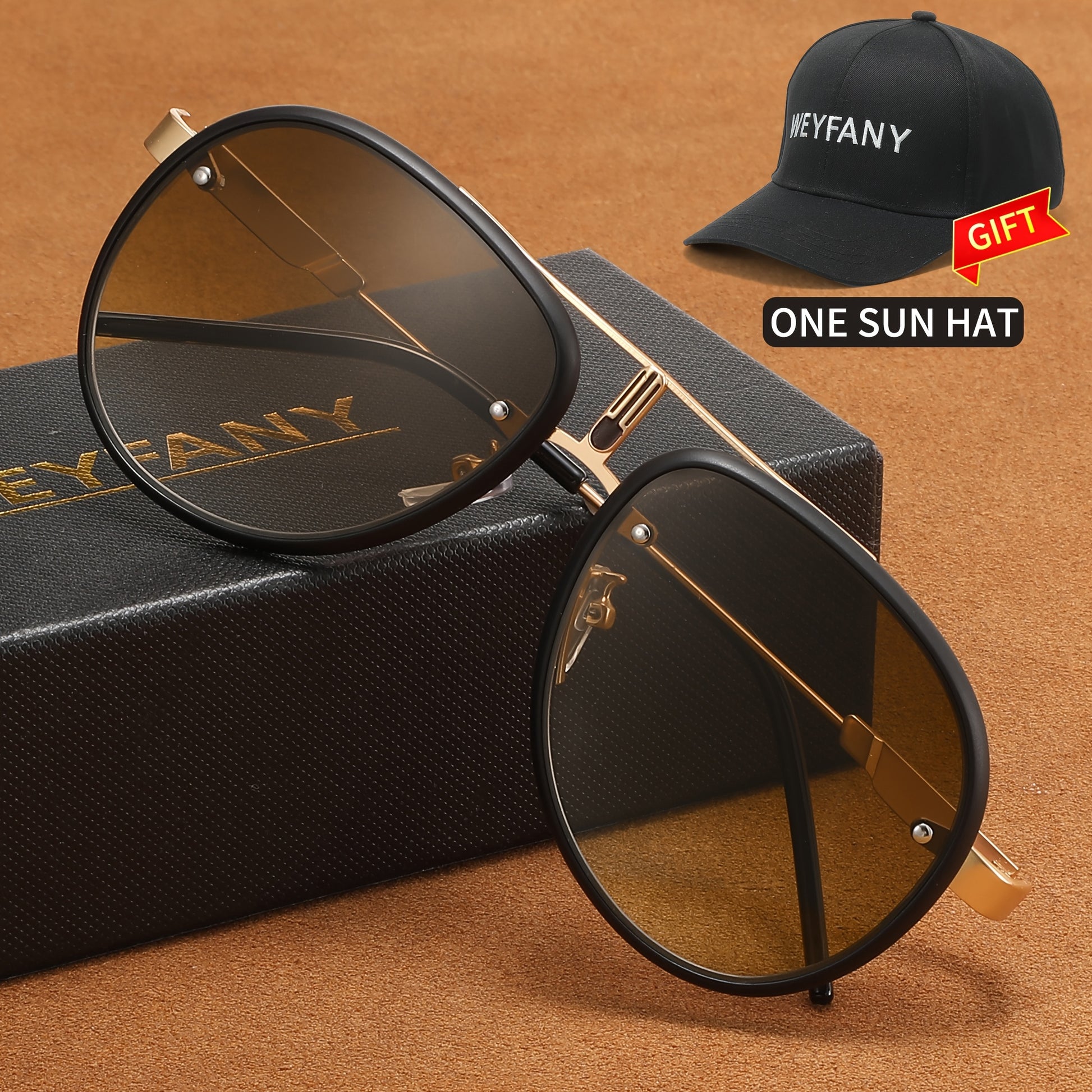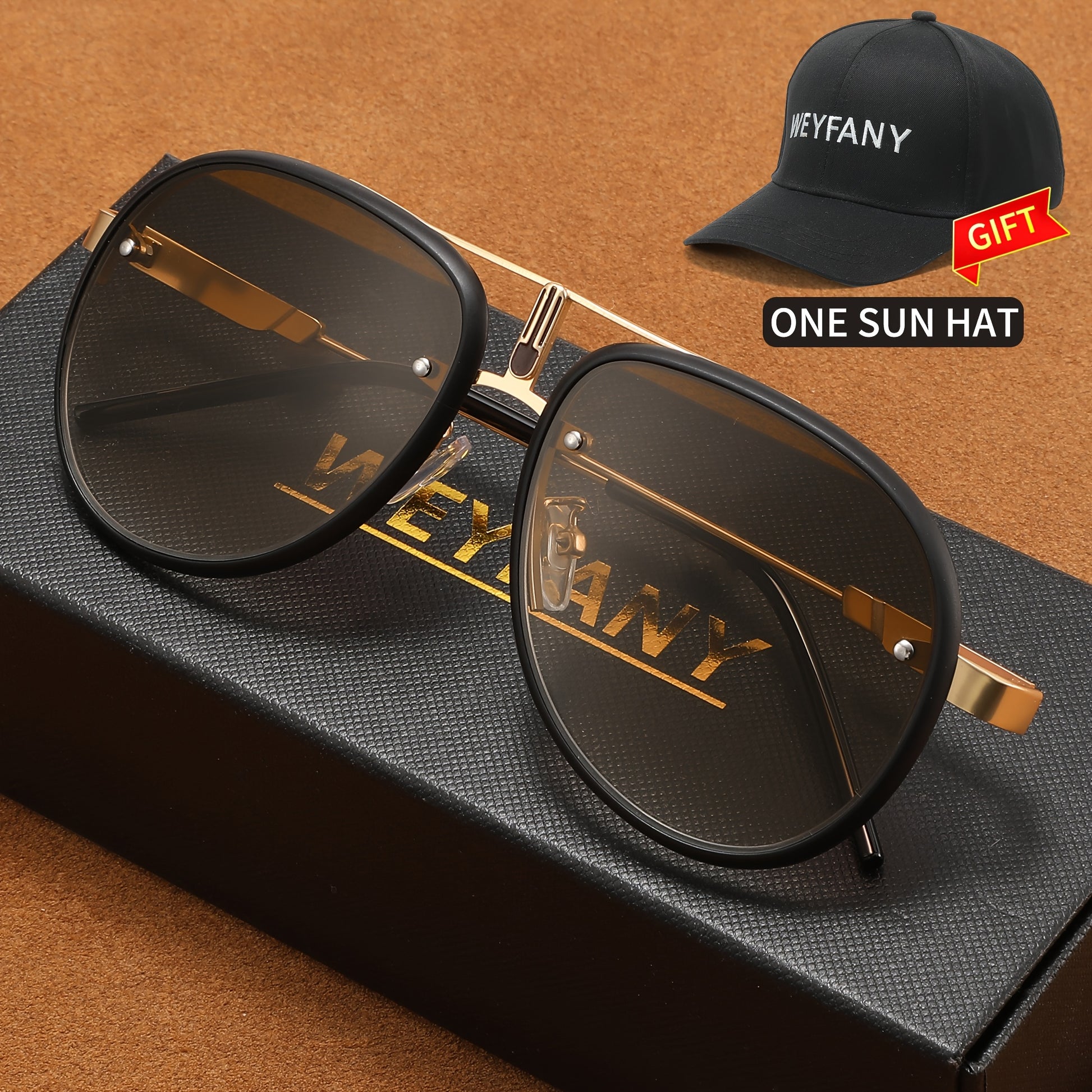 WEYFANY Classic Pilot-Style Polarized Fashion Glasses for Men & Women - Protection, Stainless Steel Frame, Perfect for Driving, Fishing, Travel & Parties - Elegant Gift Box with "KEYFANY" Sun Hat Included
