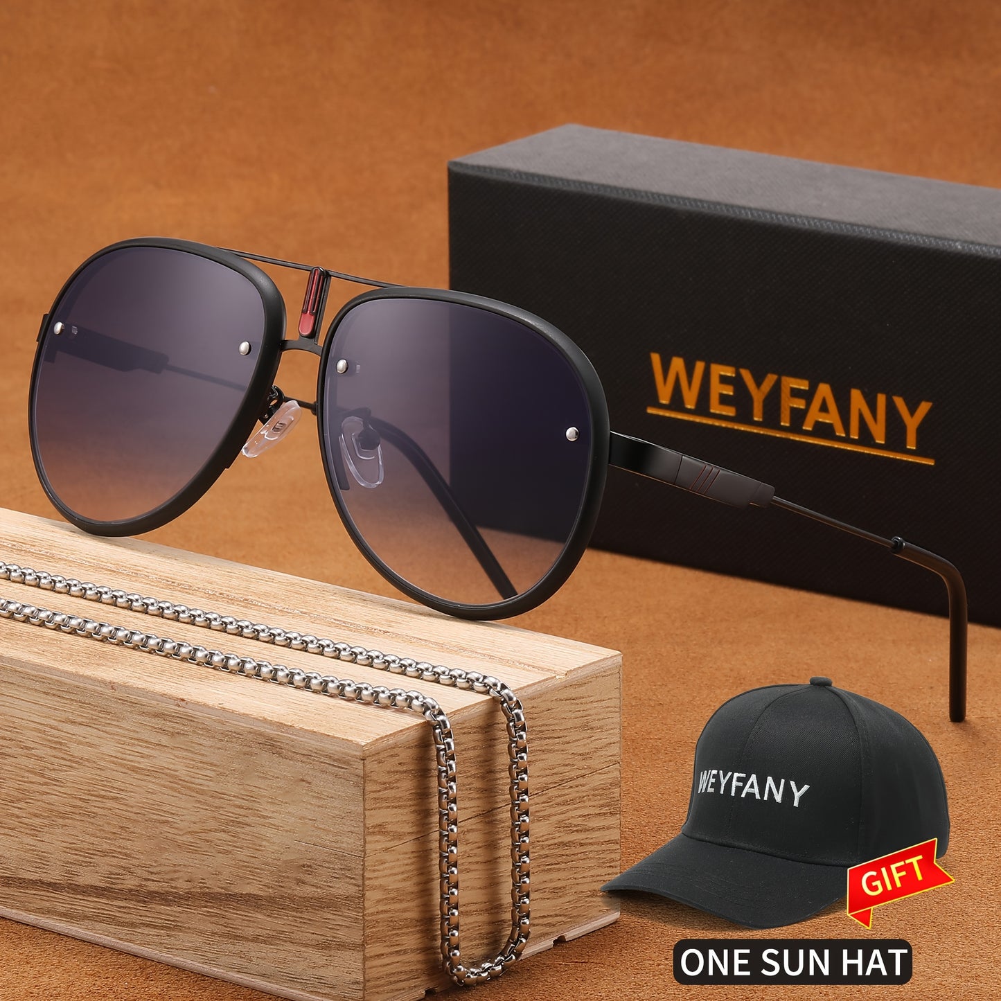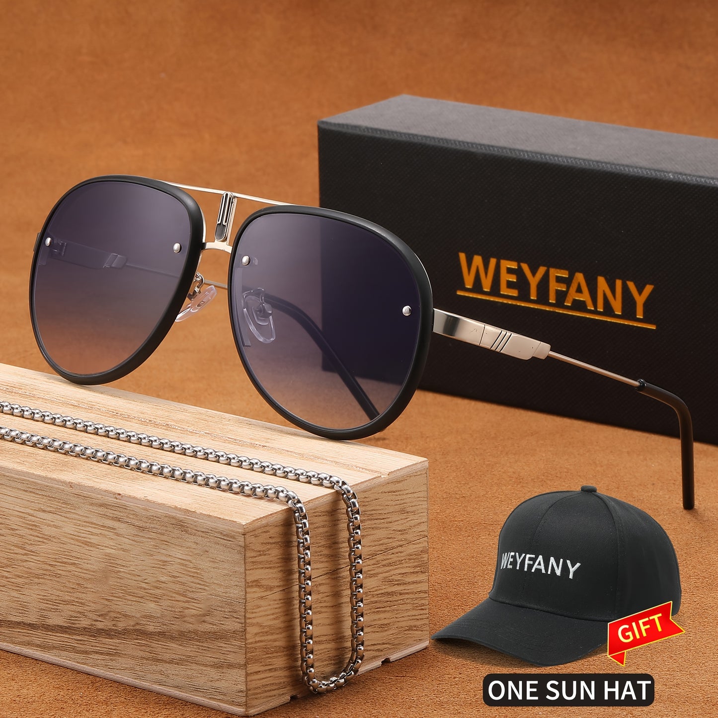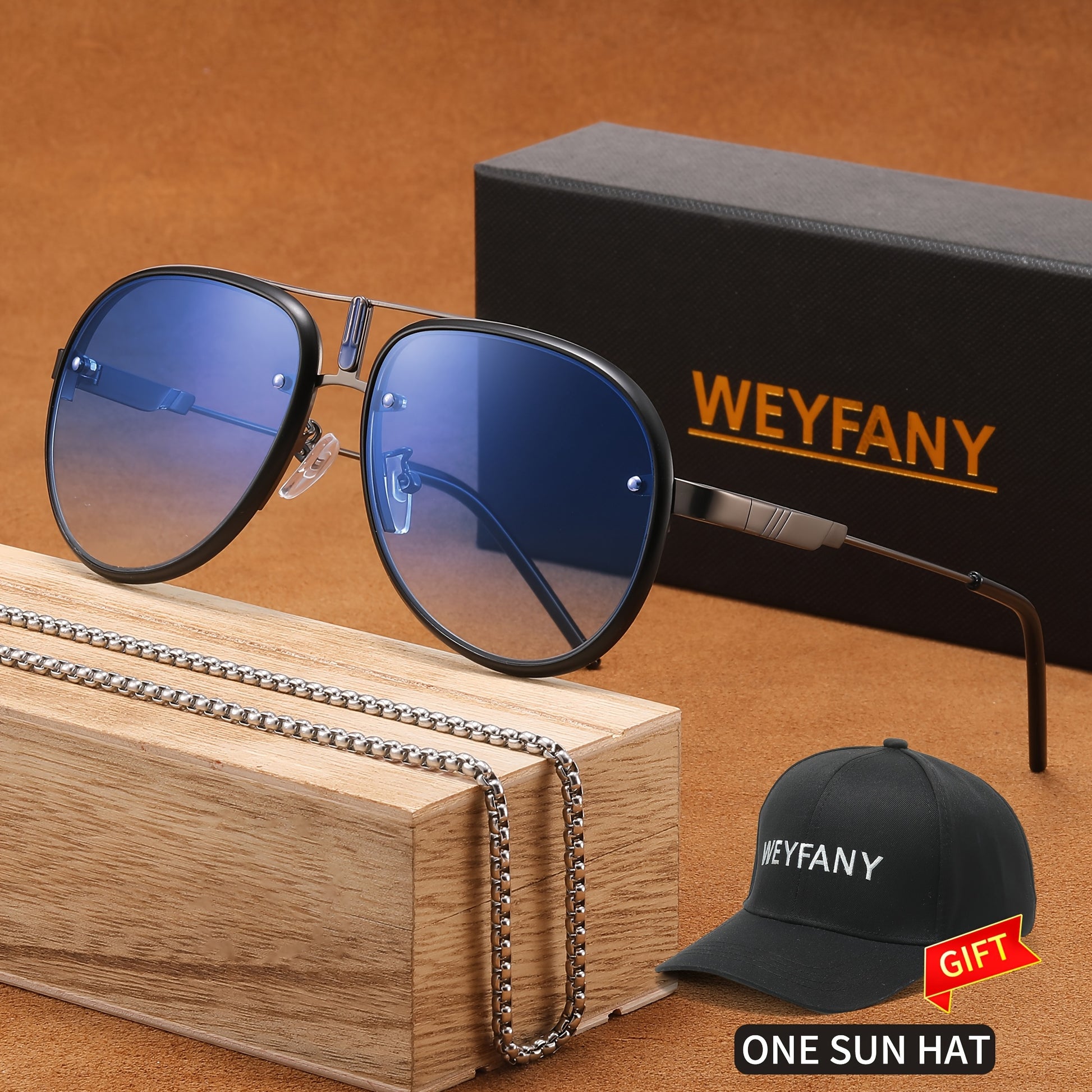 WEYFANY Classic Pilot-Style Polarized Fashion Glasses for Men & Women - Protection, Stainless Steel Frame, Perfect for Driving, Fishing, Travel & Parties - Elegant Gift Box with "KEYFANY" Sun Hat Included