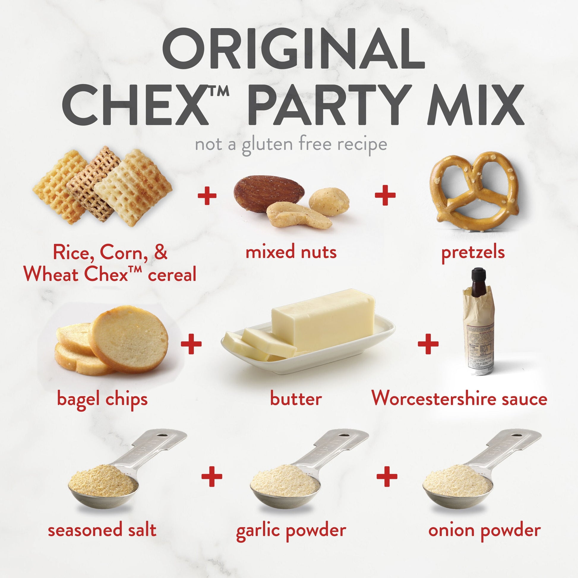 - DELICIOUSLY EASY RECIPES: A key ingredient in homemade Original Chex Mix and Muddy Buddies; Toss some in your favorite recipes for trail mix, pub mix, party mix, and more