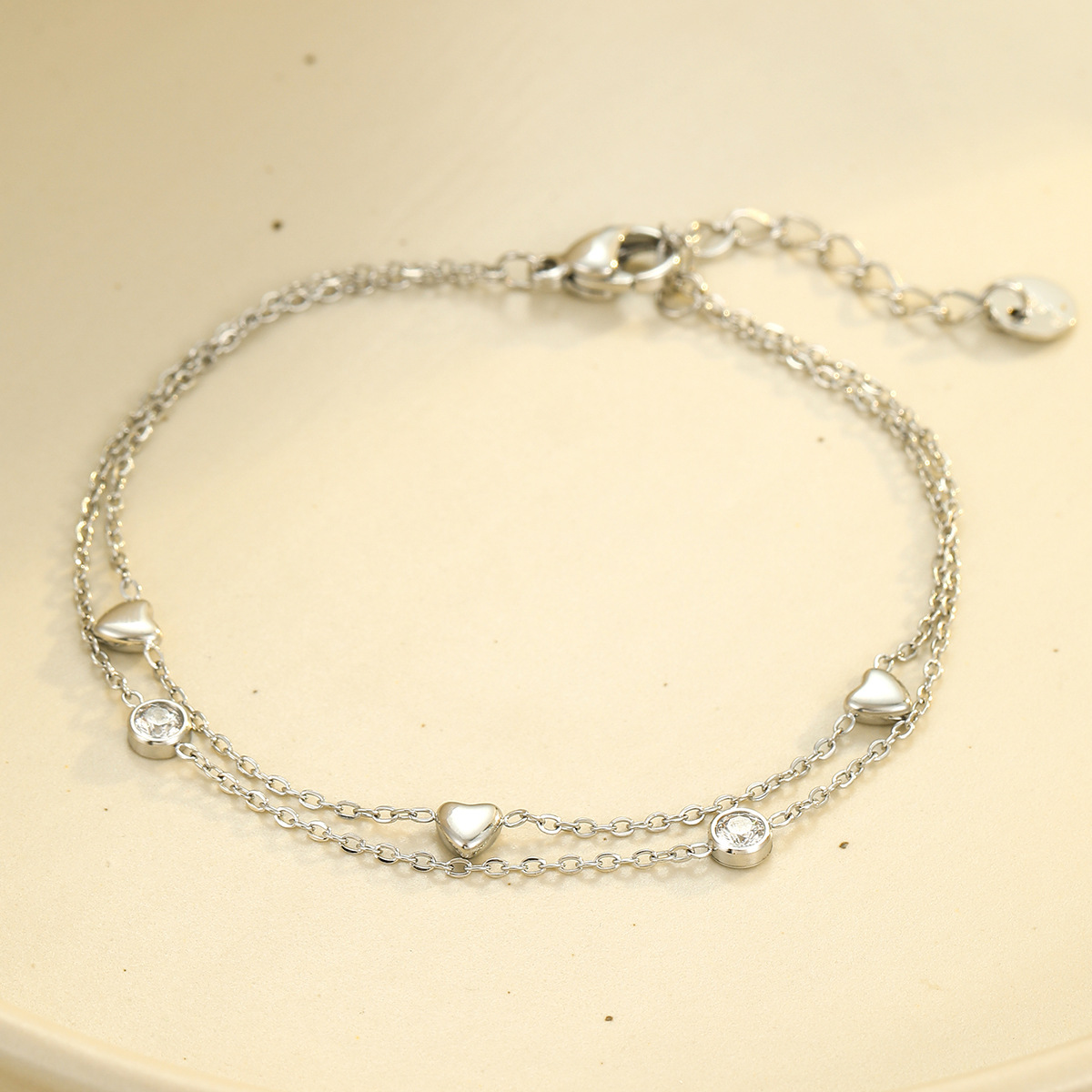 Wild Stainless Steel Bracelet Loving Heart Zircon High-Grade Titanium Steel Women Accessories