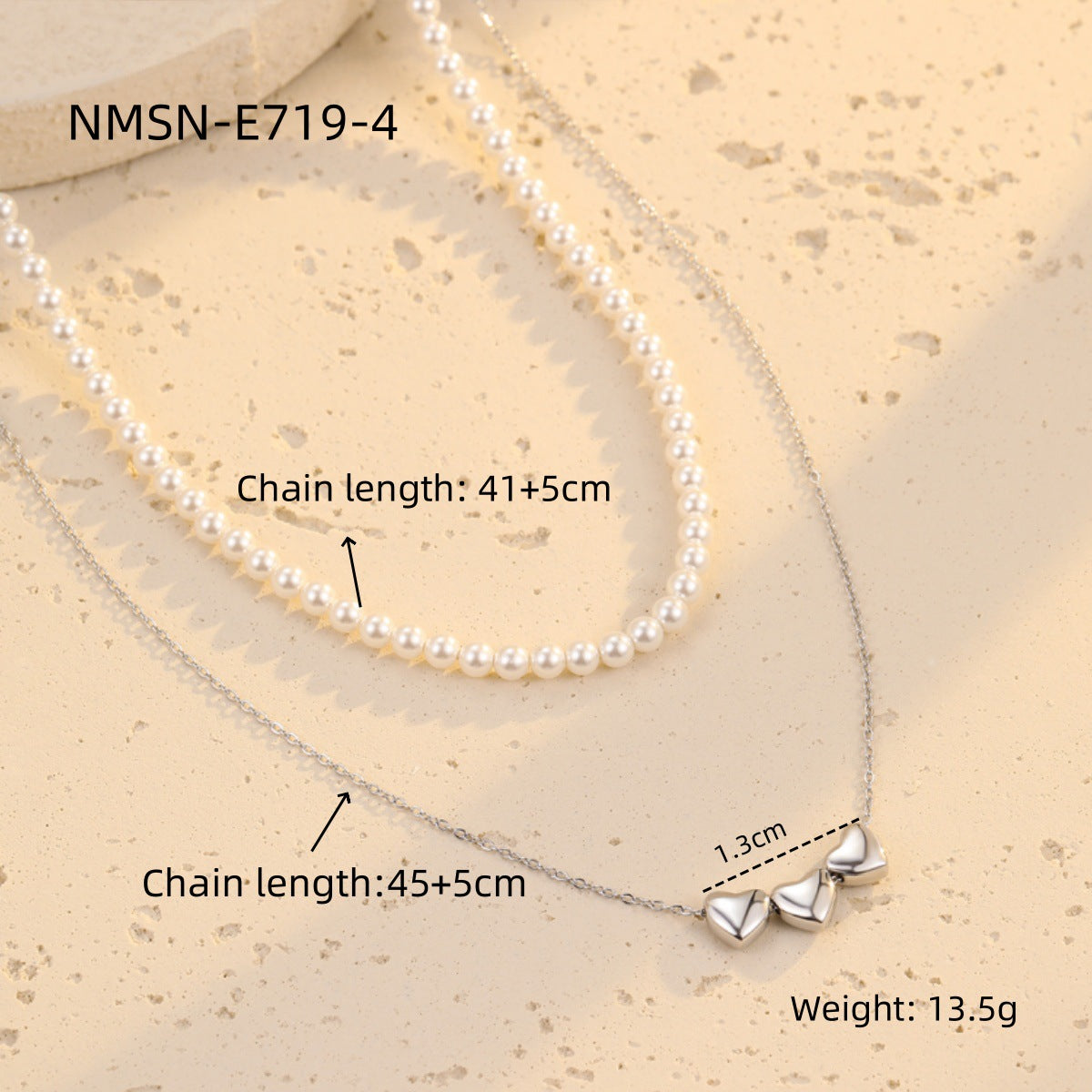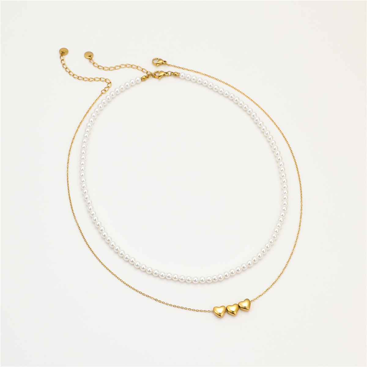 Wild Stainless Steel Necklace Pearl Heart Embellished Plated 18K Gold Titanium Steel Clavicle Chain Jewelry