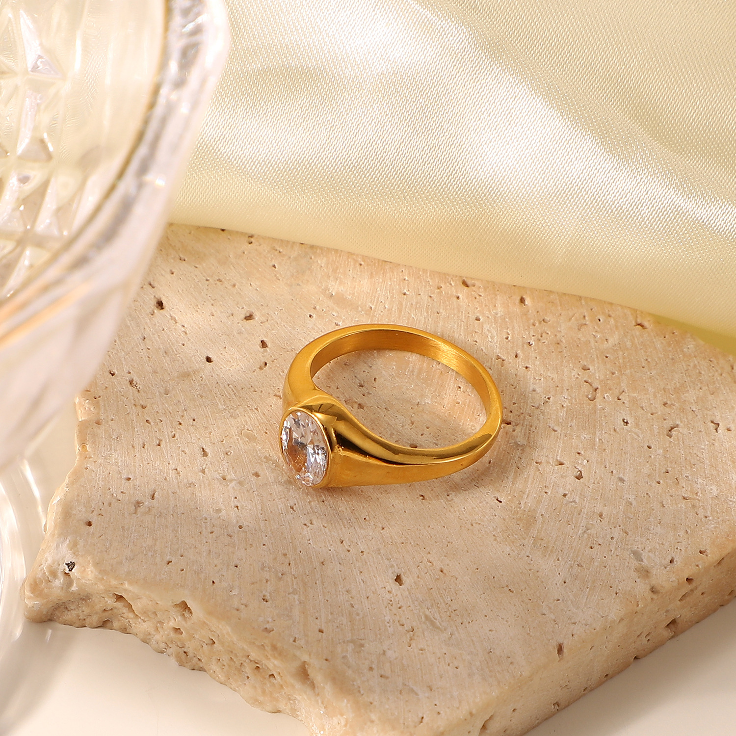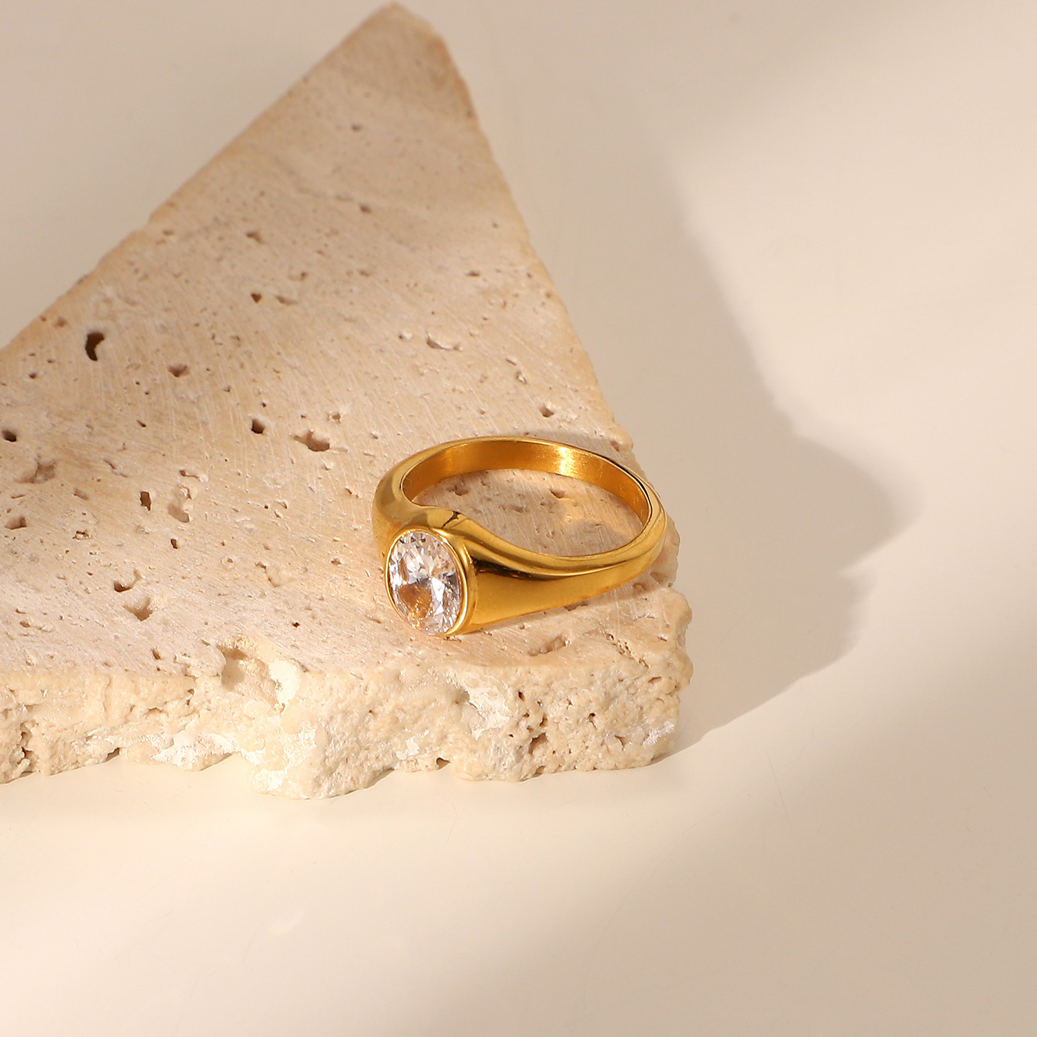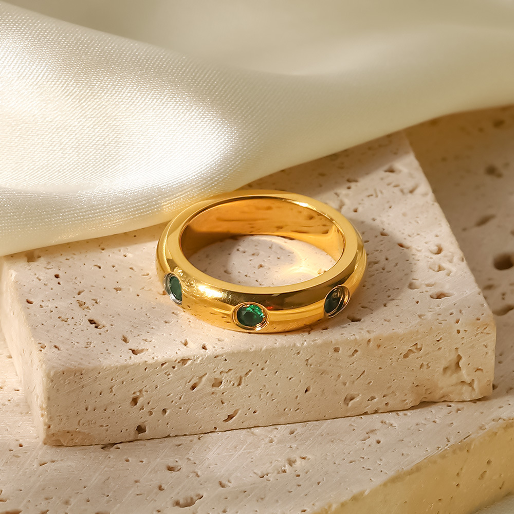 Wind Net Red Jewelry 18K Gold Stainless Steel Inlaid Green Zircon Ring Women Ring