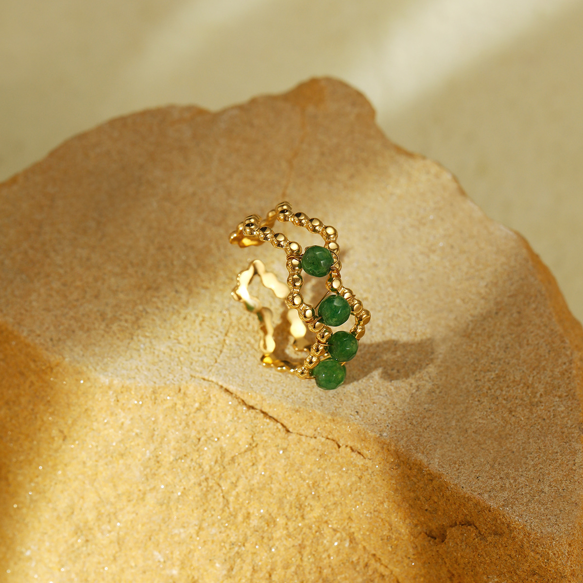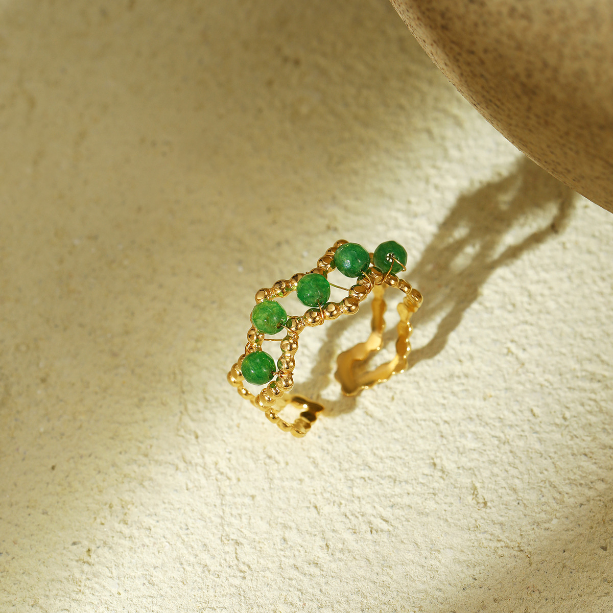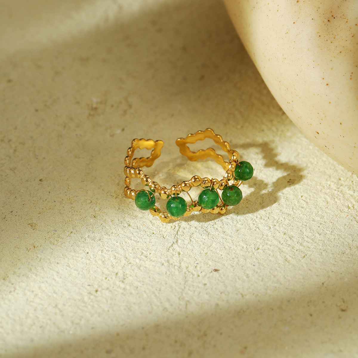 Wizard of Oz Green Natural Stone Beaded Titanium Steel Ring Women Minority Design High Grade Stainless Steel Ring