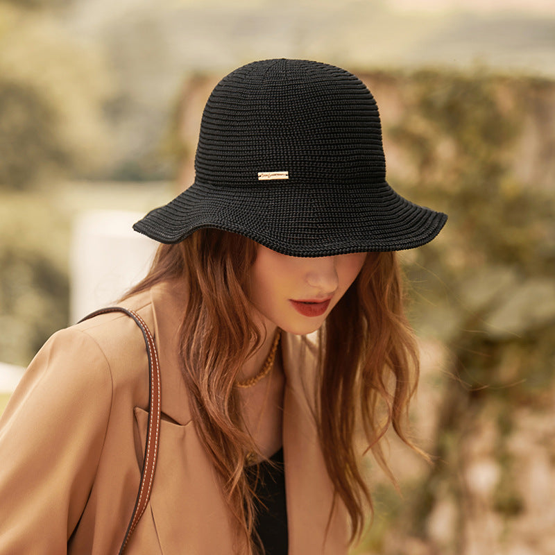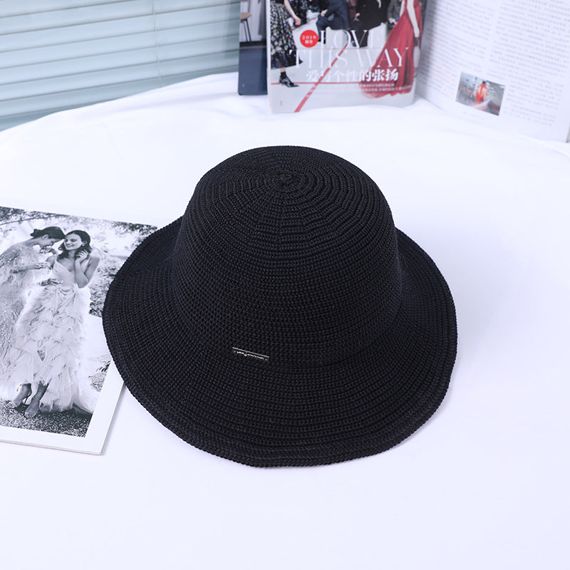 Women Autumn Thin Casual Fisherman Hat Sun Proof Simple Hat Face Covering Crochet Hollow Out Cutout Cap