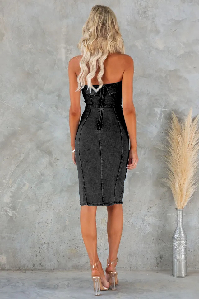 Women Bandeau Sexy Sexy Slim Fit Patchwork Denim Dress