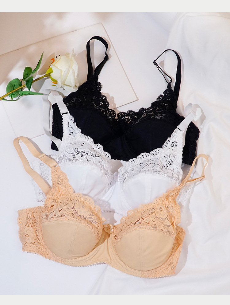 Women Bra Adjustable Big Chest Show Small Thin Lace Underwear with Steel Ring