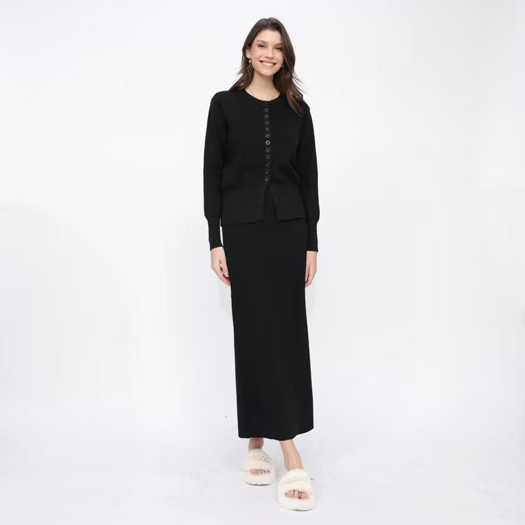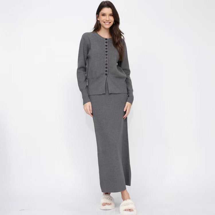 Women Cardigan Skirt Knit Sweater Two Piece Sets