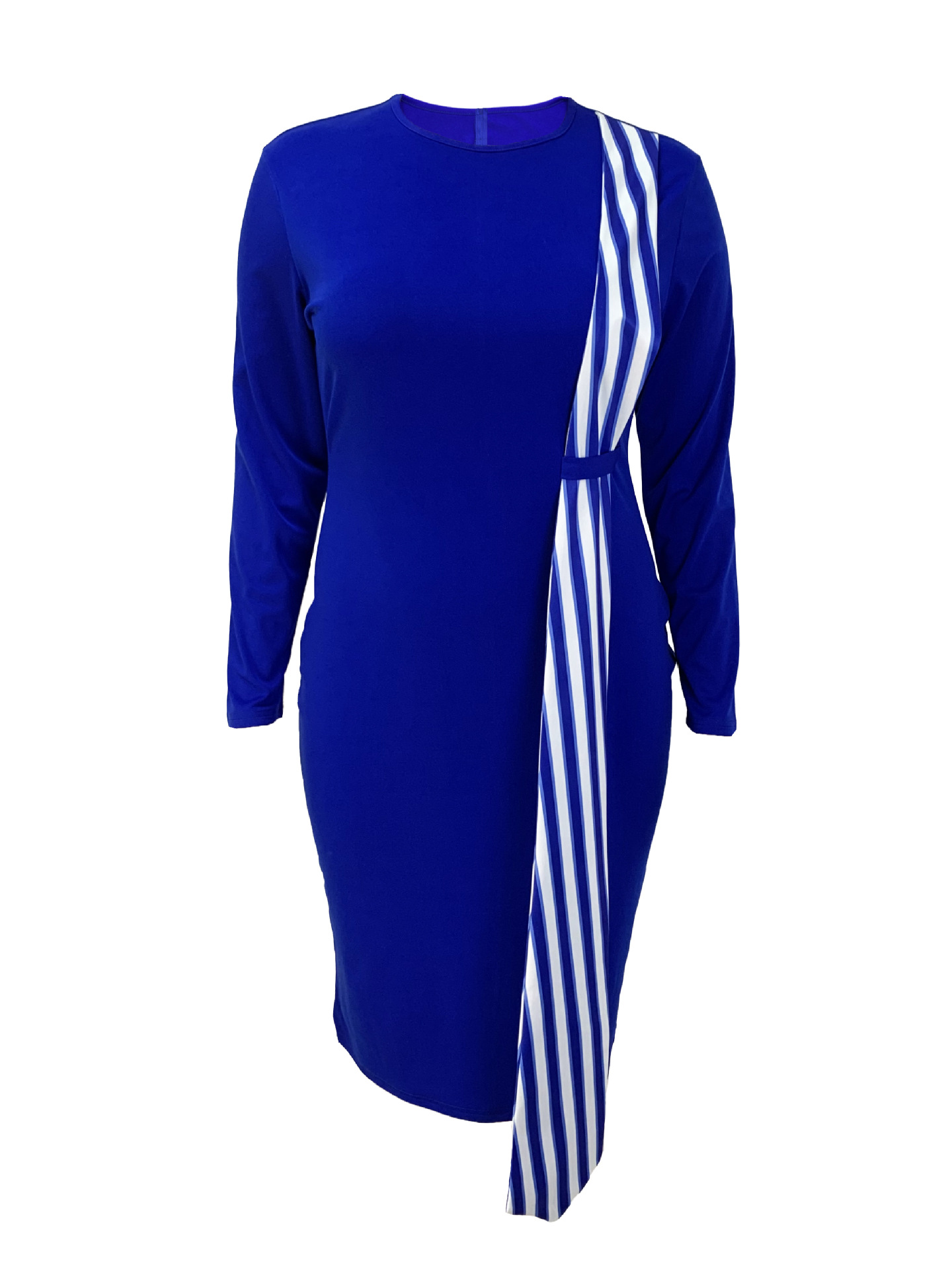 Women Clothing plus Size Sheath Fitted Waist Long Sleeve round Collar Dress