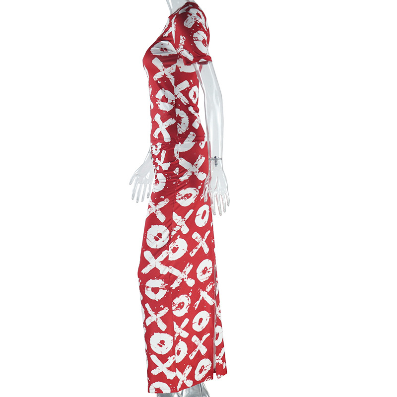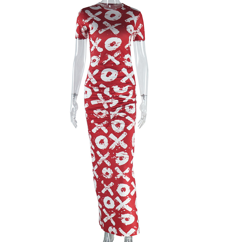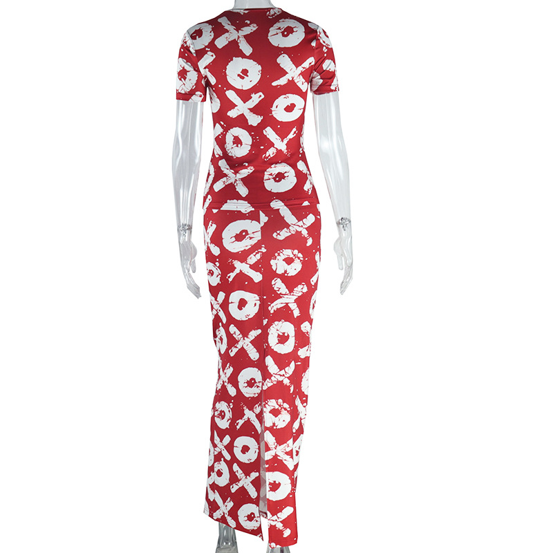 Women Clothing Printed Skirt Set Round Neck Short Sleeve Top Skirt Two Piece Suit Suits