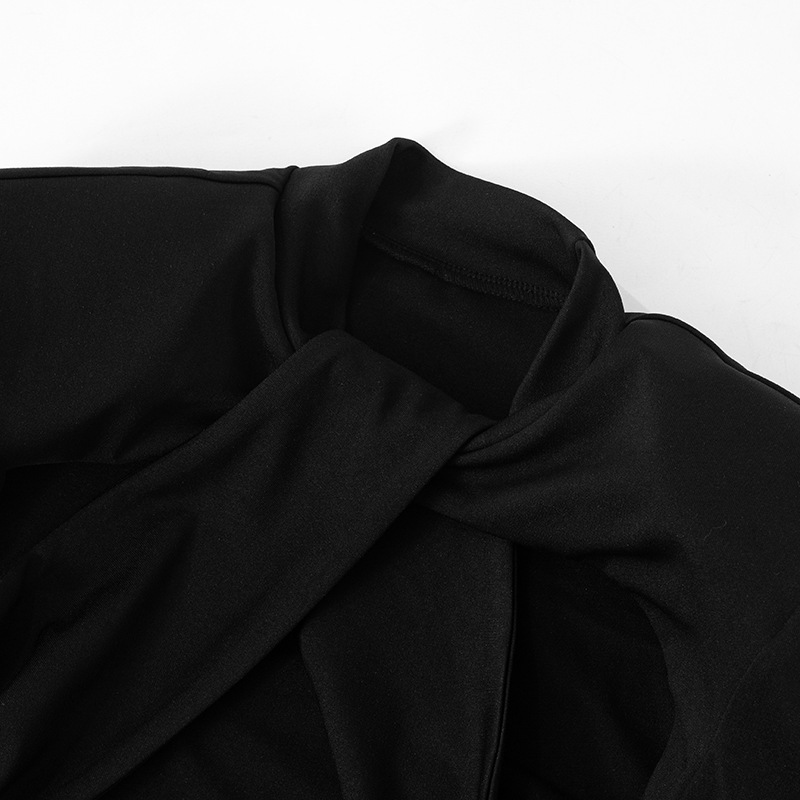 Women Clothing Solid Color Casual Twist Padded Shoulder Waist Tight Hip dress