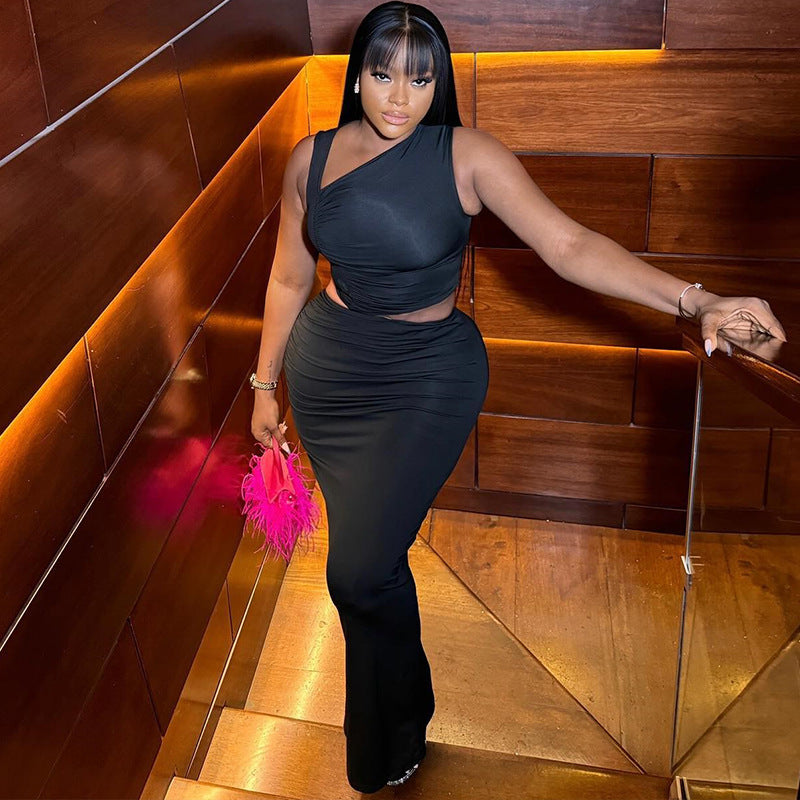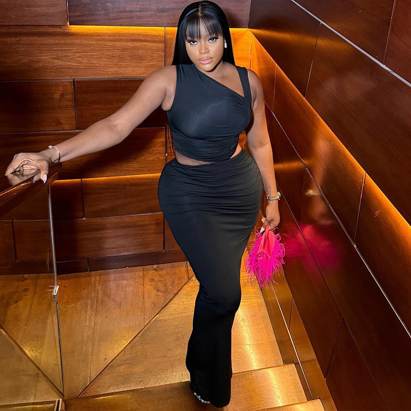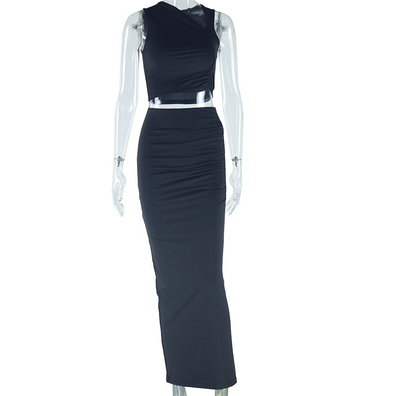 Women Clothing Solid Color Skirt Set Sexy Sleeveless Vest Skirt Two Piece Sets