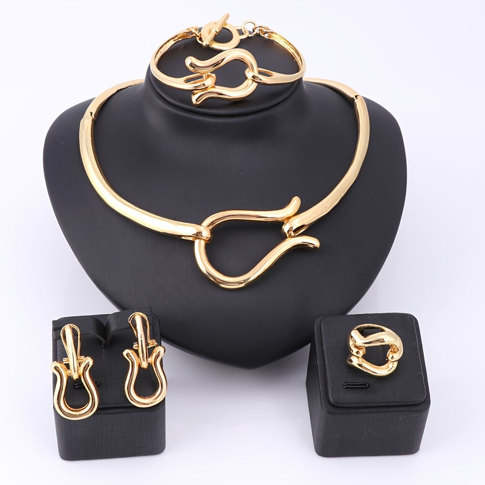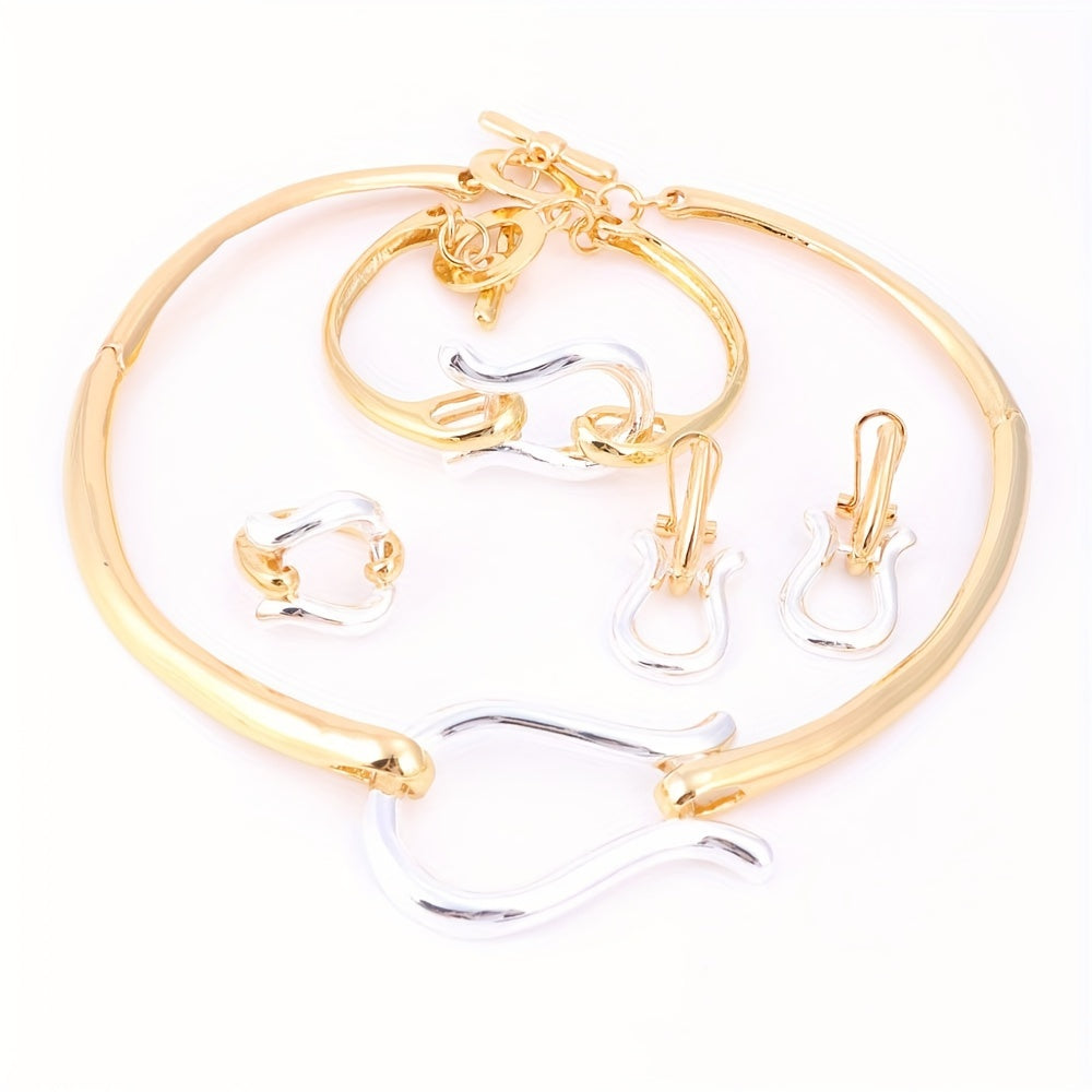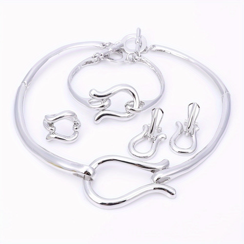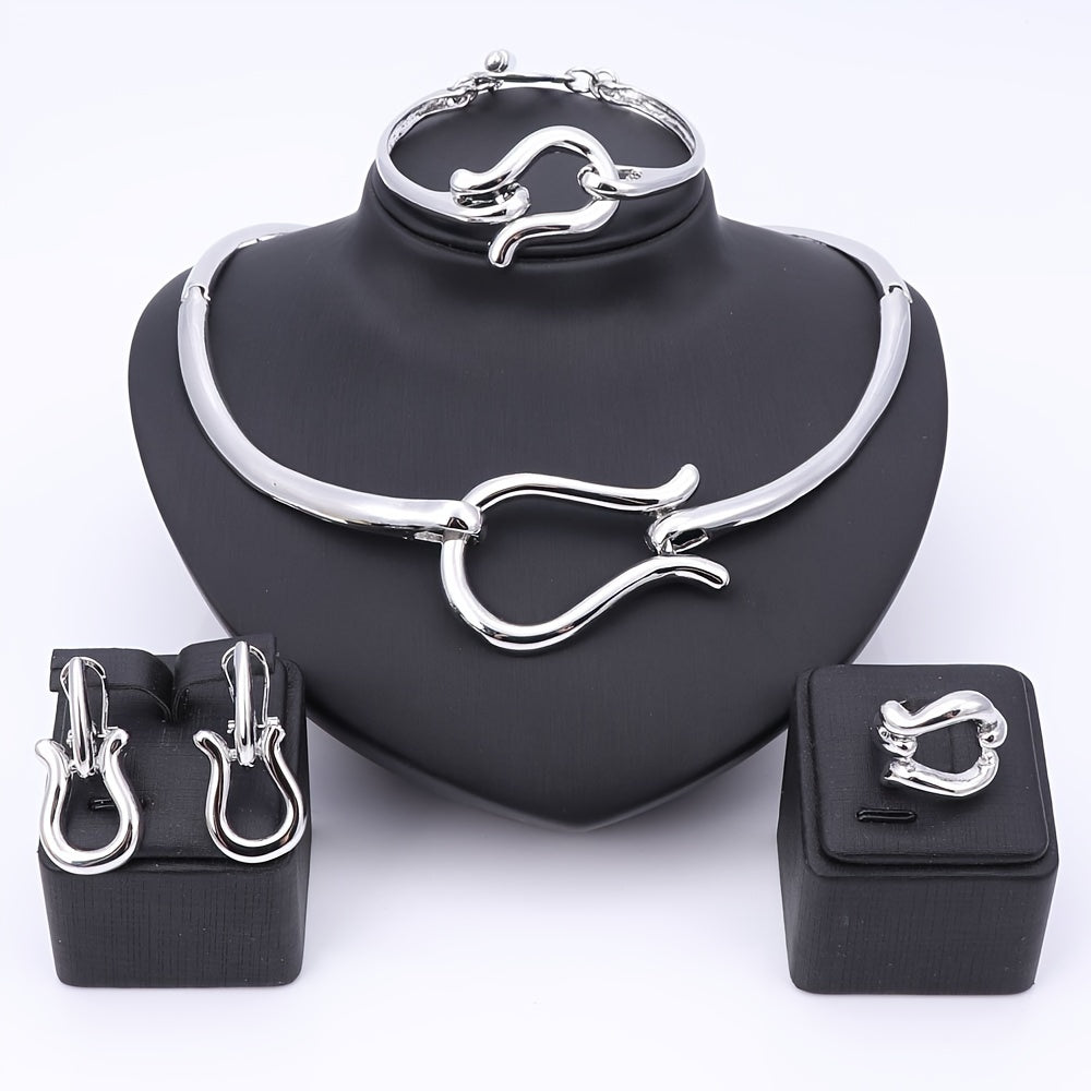 Women Fashion Bridal Wedding Elegant Romantic Necklace Earring Bangle Ring Prom Jewelry Sets