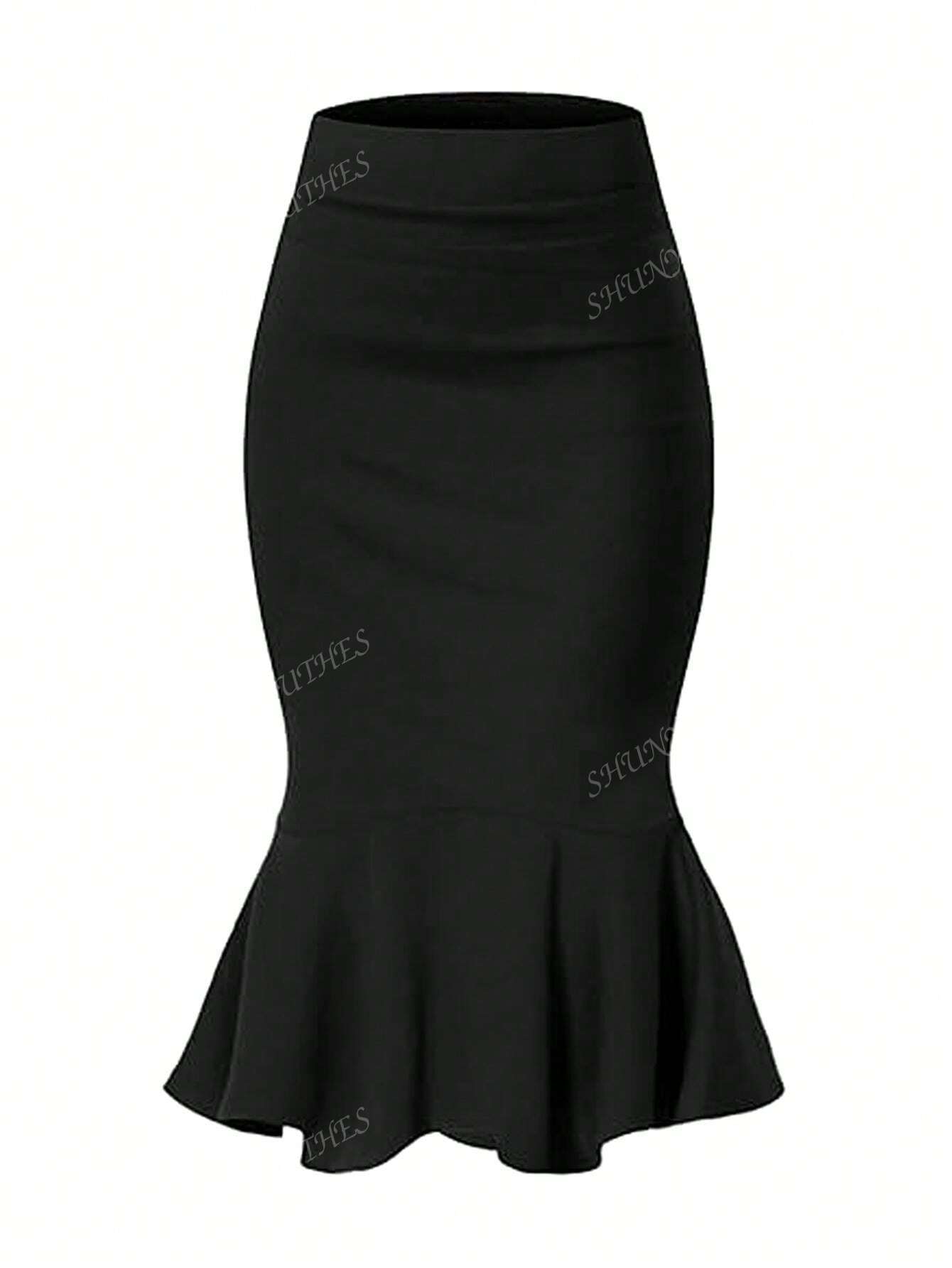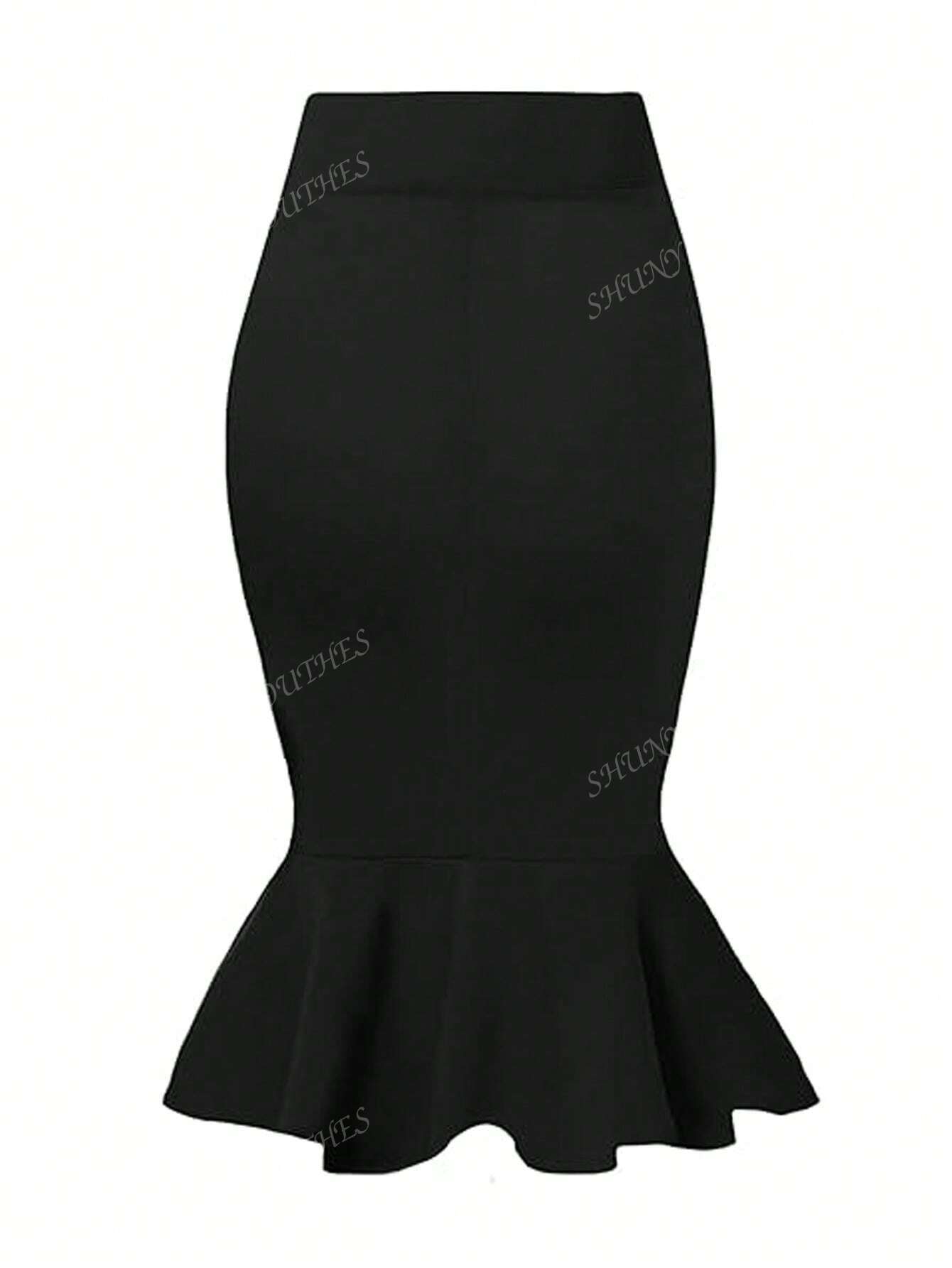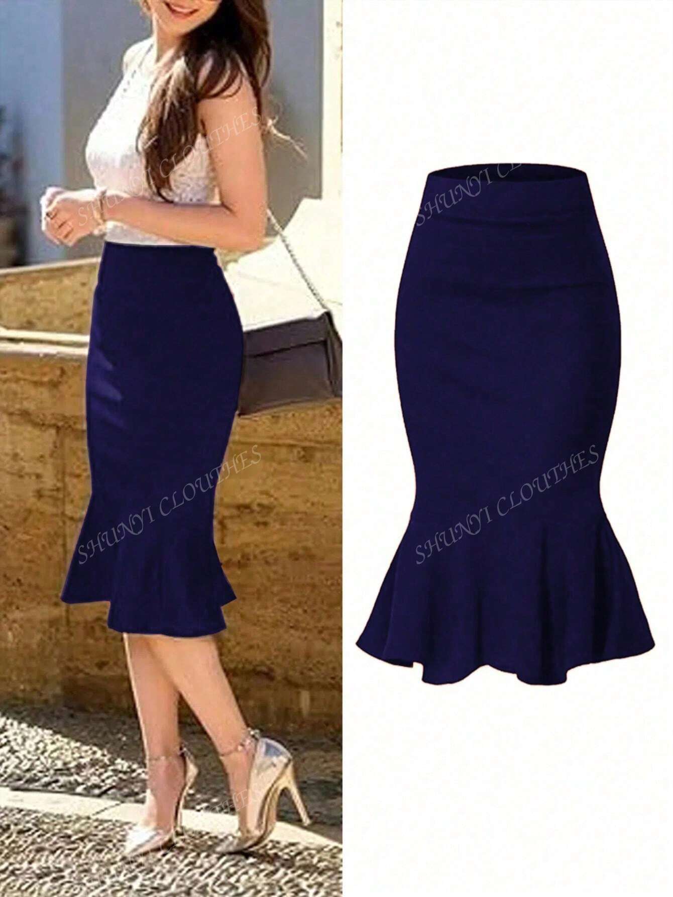 Women Office/Commute High Waist Knee-Length Fitted Pencil Skirt