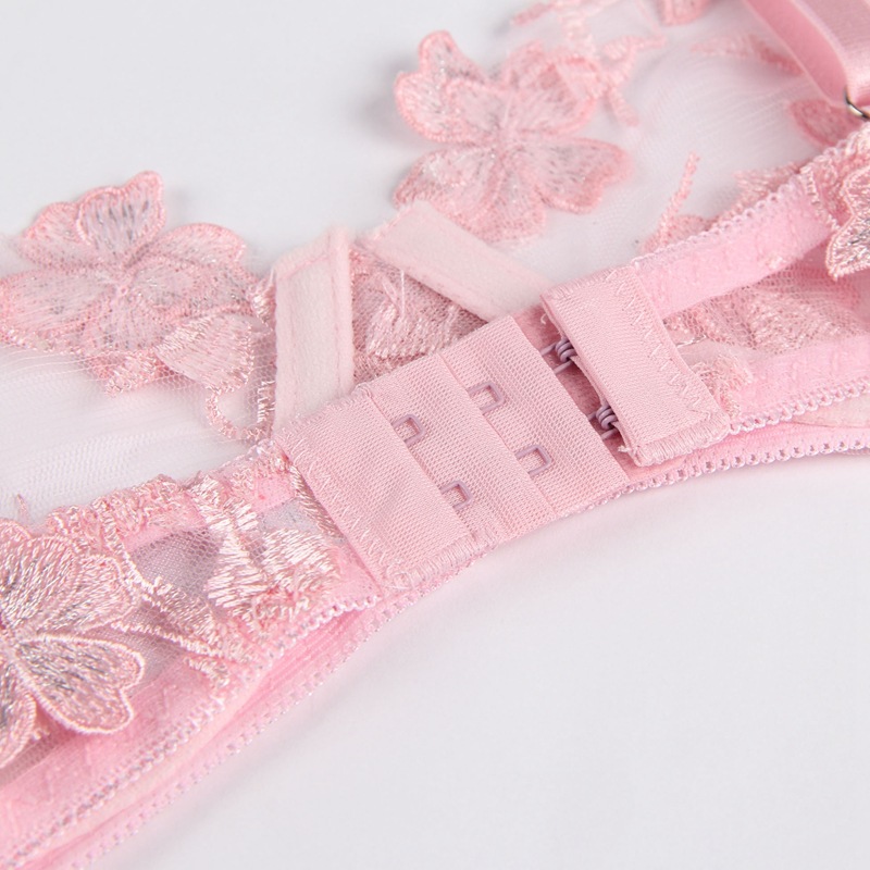 Women Sexy Temptation See through Embroidery Mesh Steel Bracket Underwear Panties Set