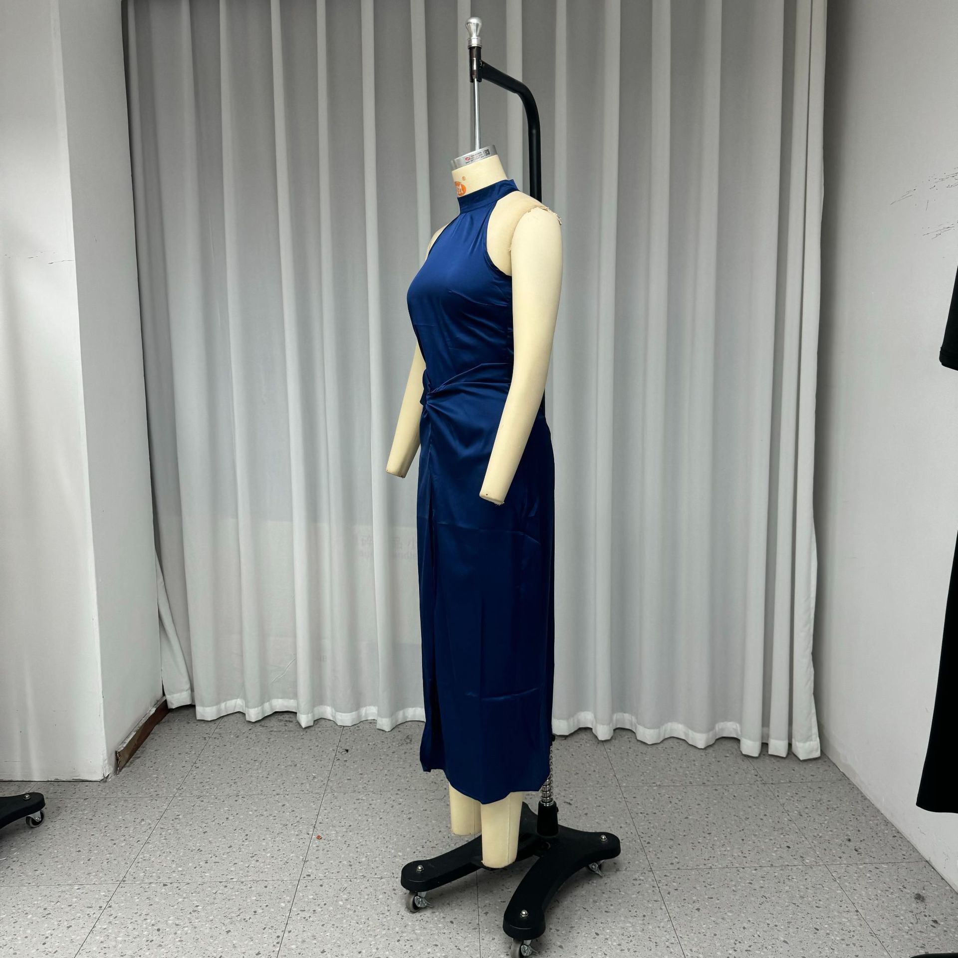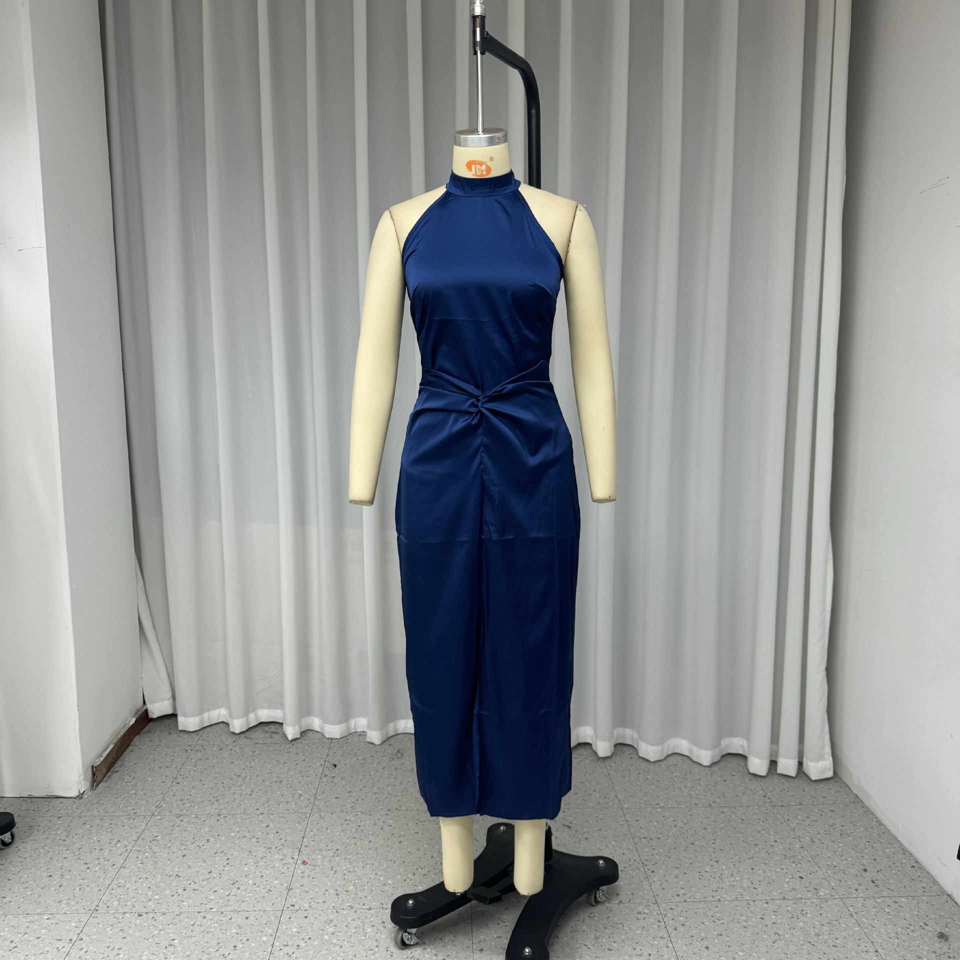 Women Sleeveless Twisted Solid Color Casual Two Piece Set