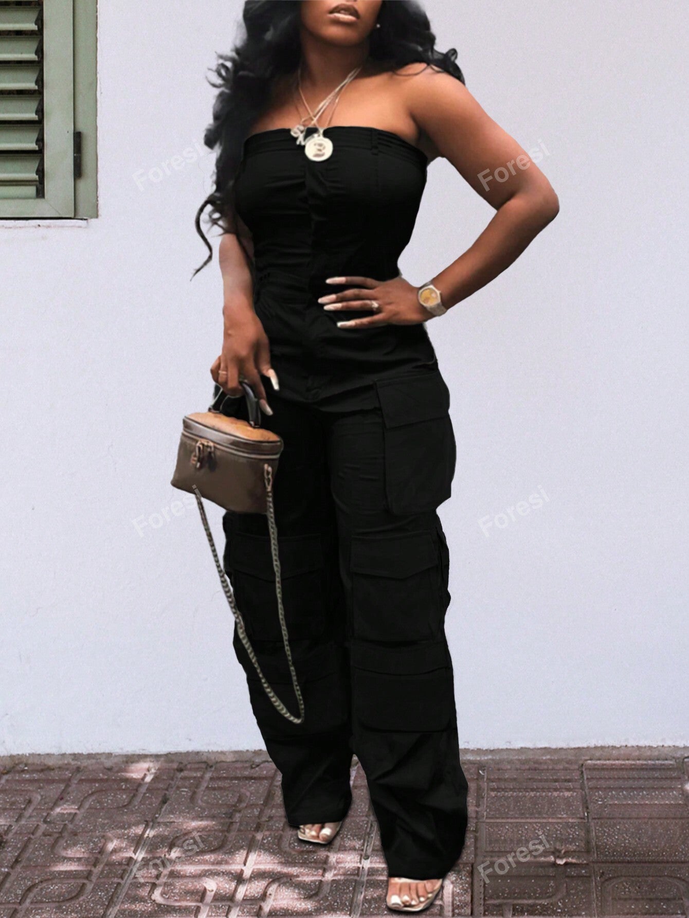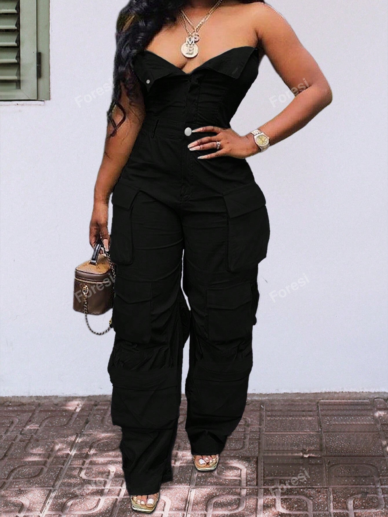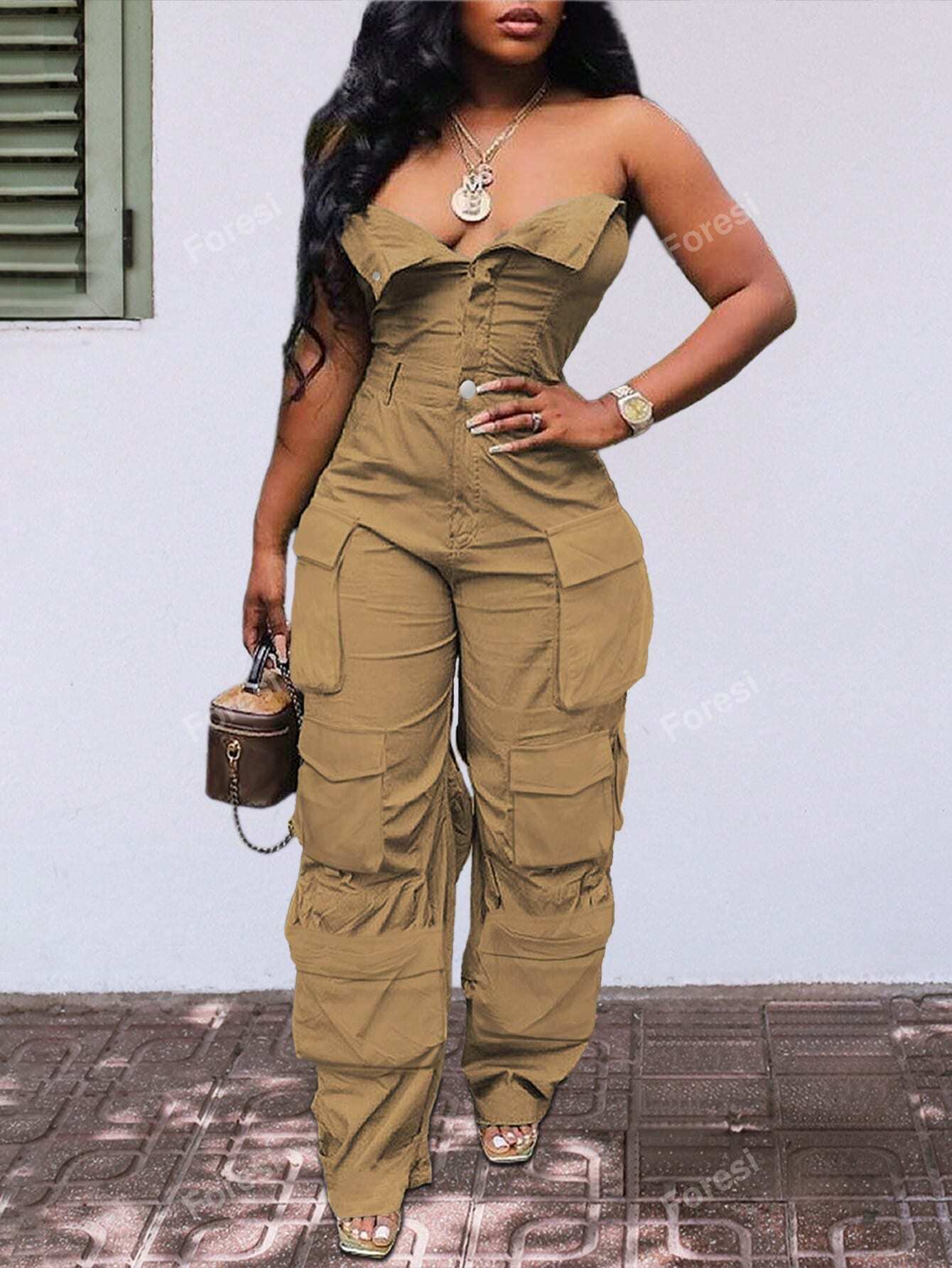 Women Summer Solid Color Pleated Casual Jumpsuit With Overalls Design