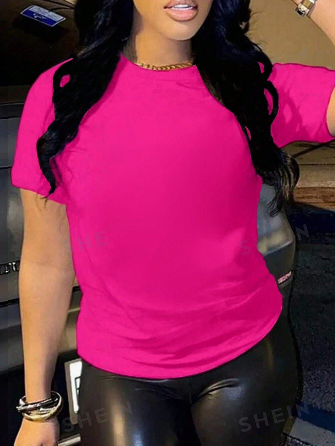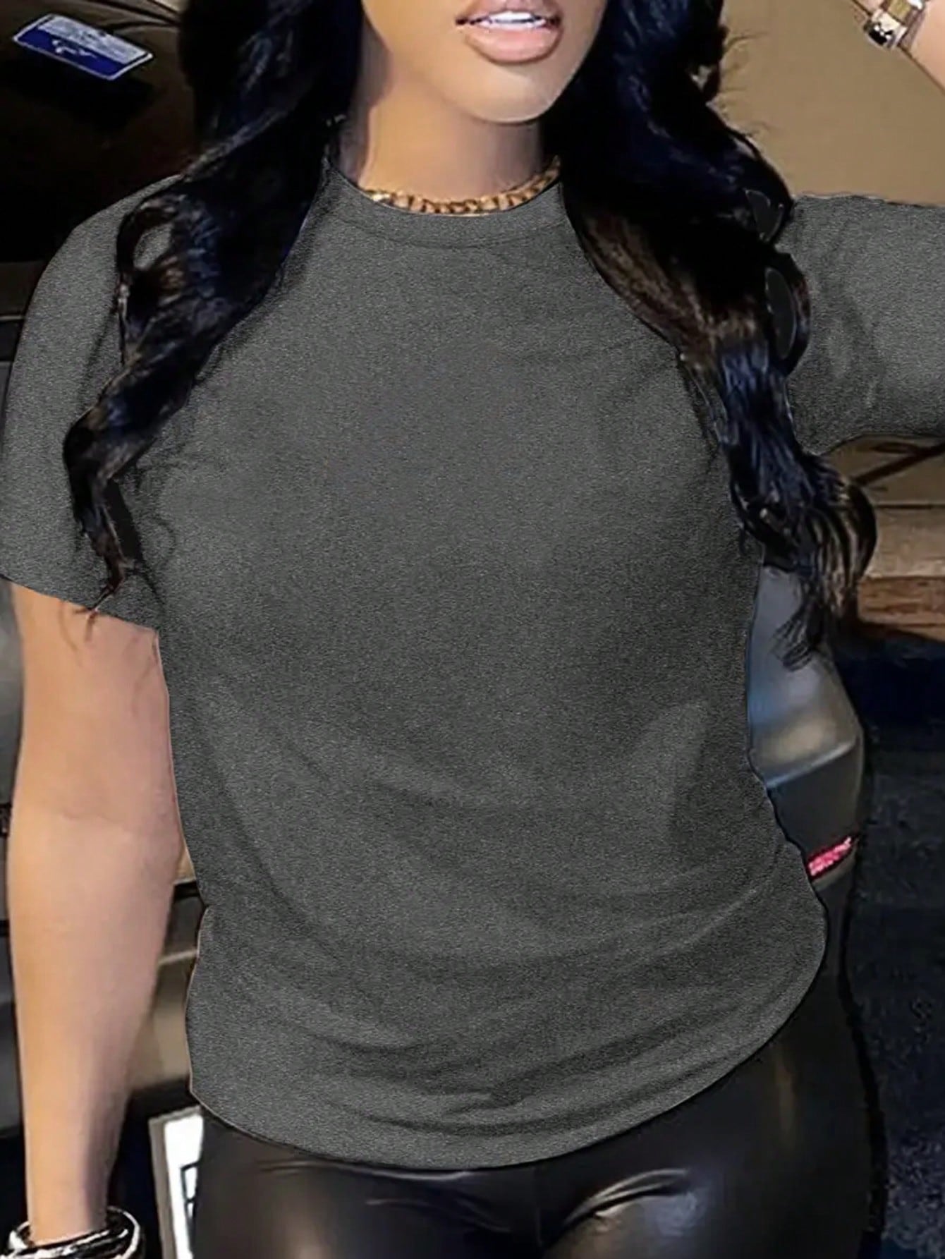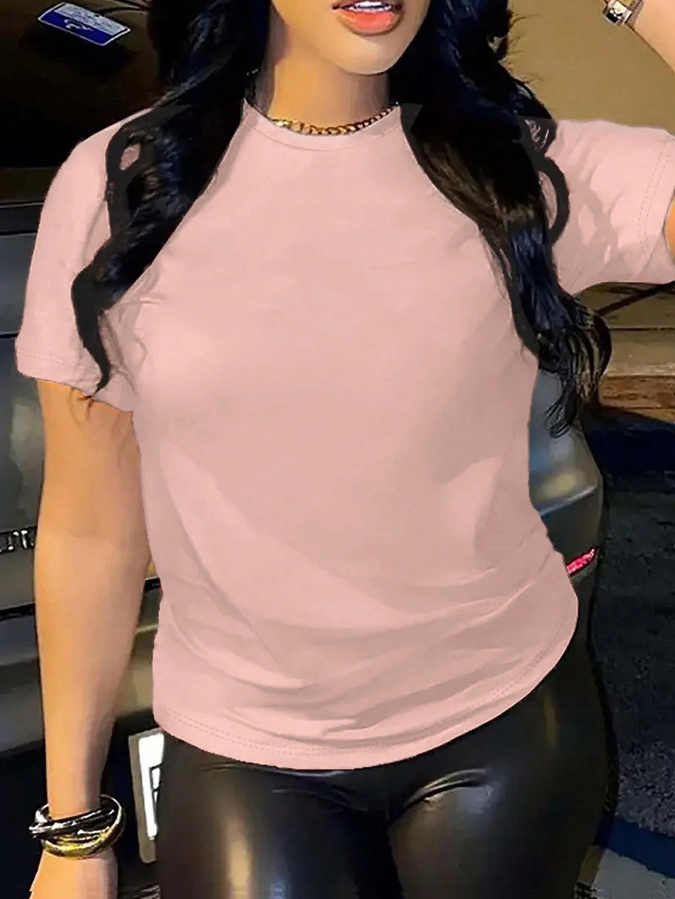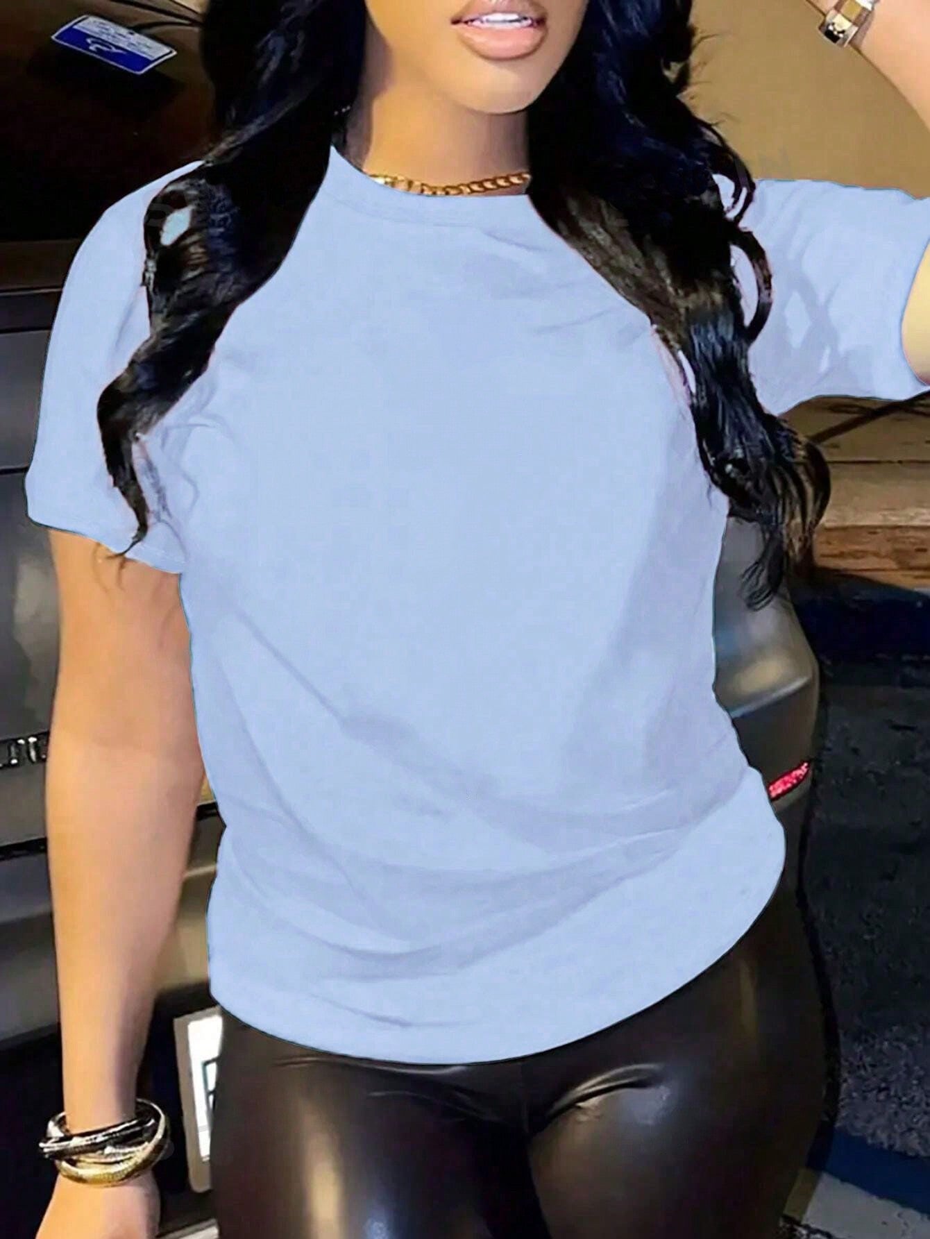 Women Summer Solid Color Round Neck Short Sleeve Casual T-Shirt