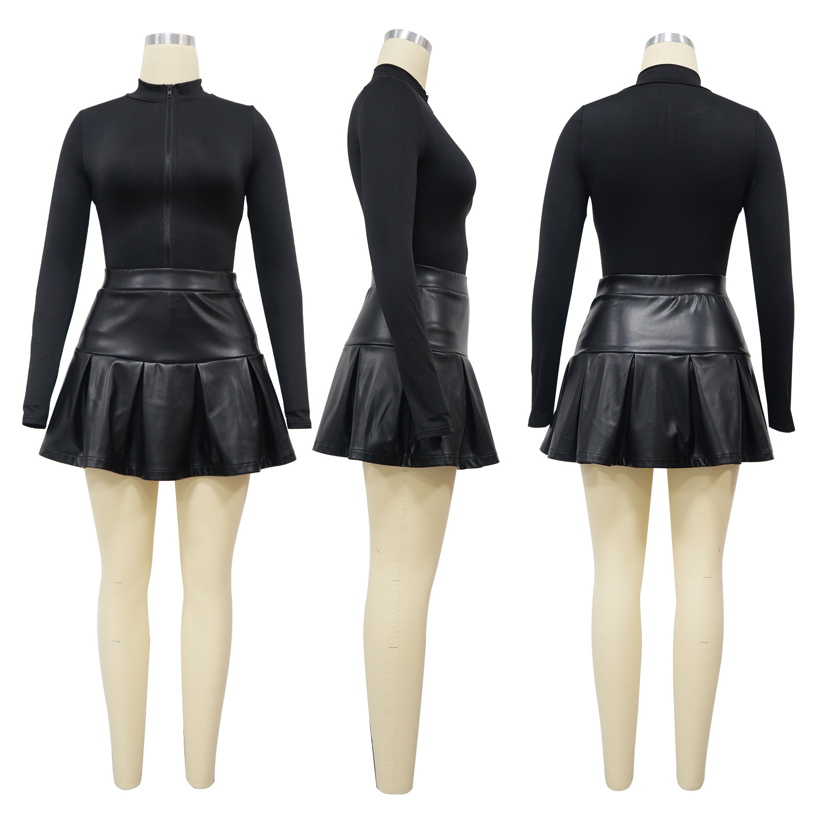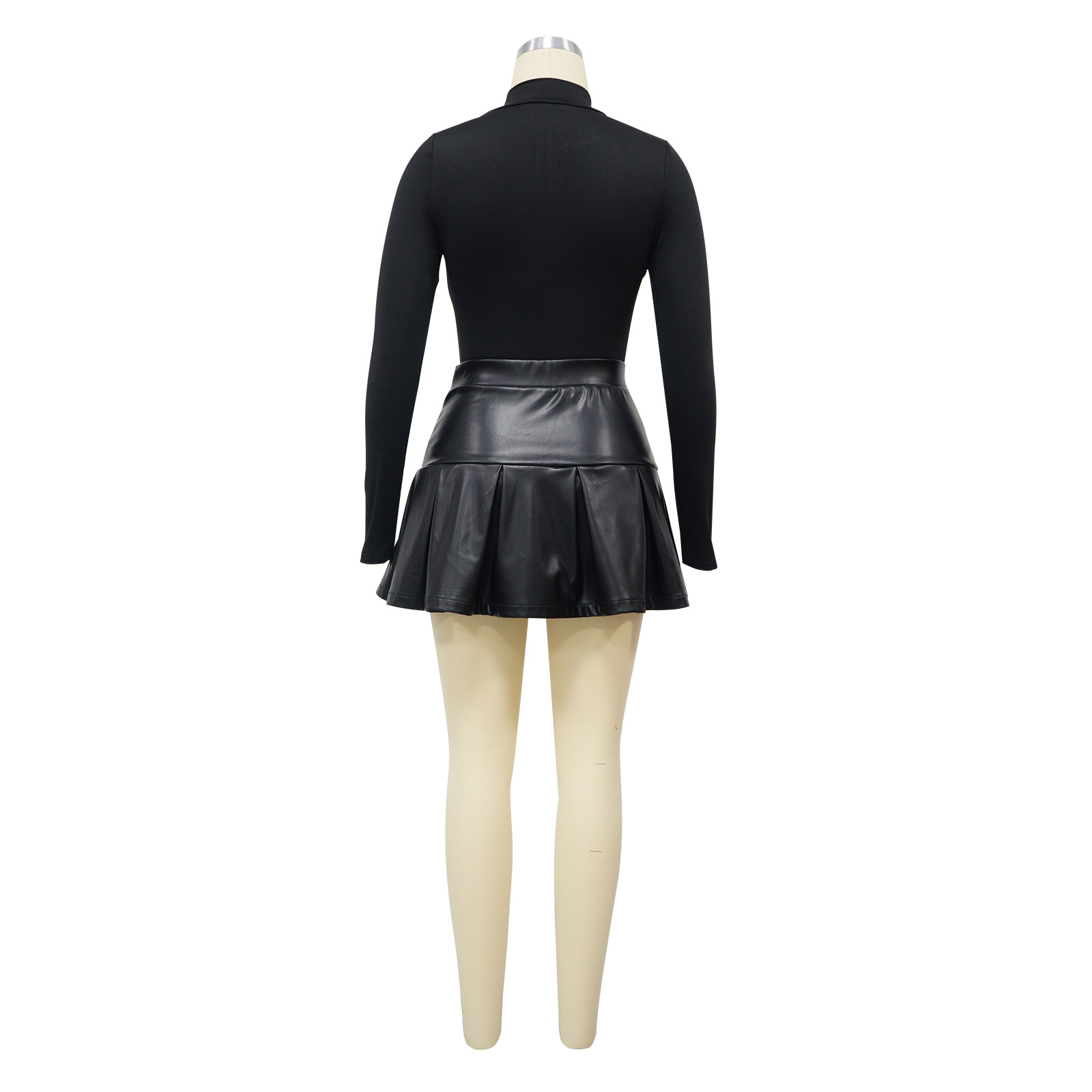 Women Wear Long Sleeve Jumpsuit Leather Skirt Autumn Winter Two Piece Set