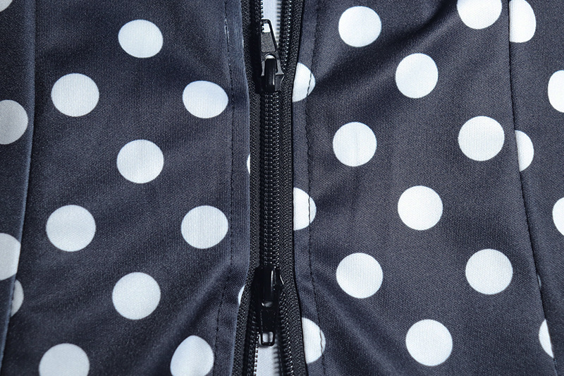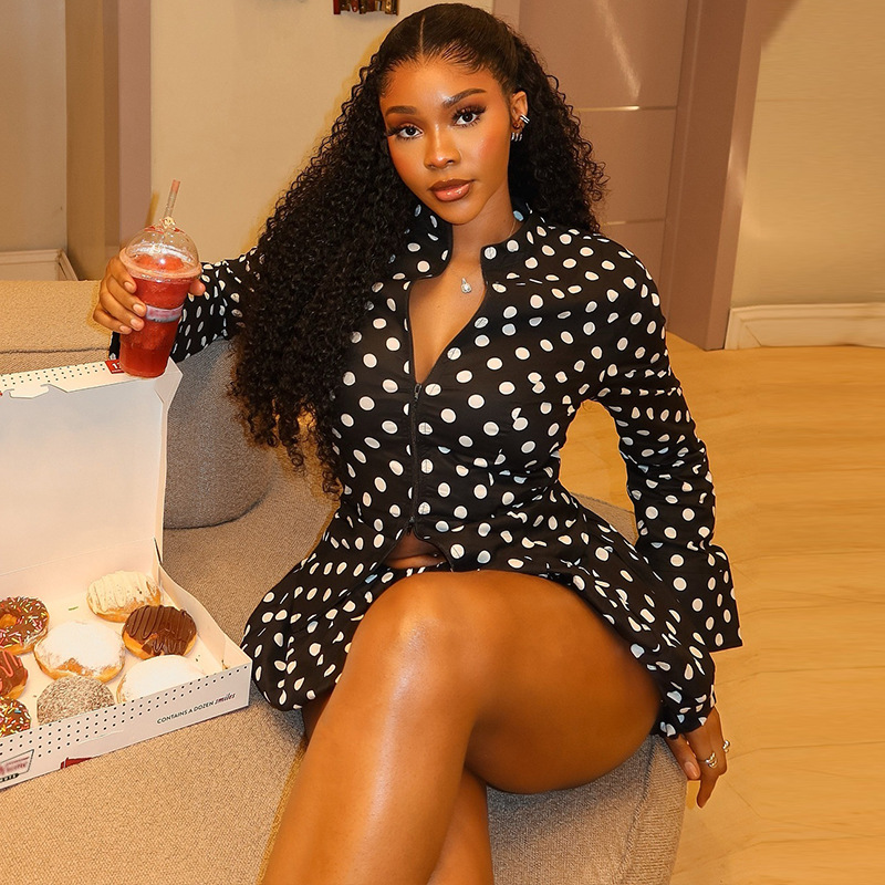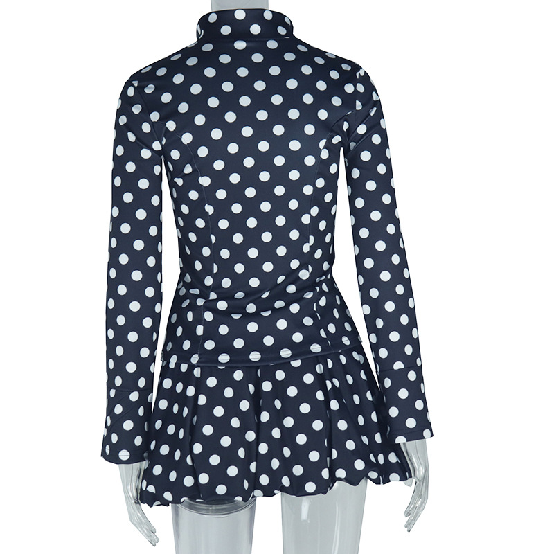 Women Wear Waist White Polka Dot Draped Skirt Set Long Sleeve Cardigan Zipper Top Skirt Two Piece Sets