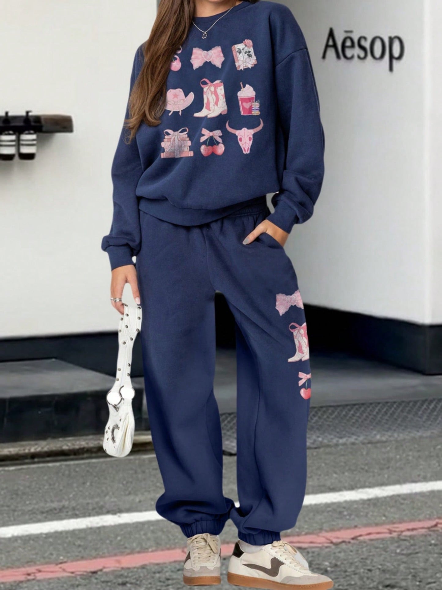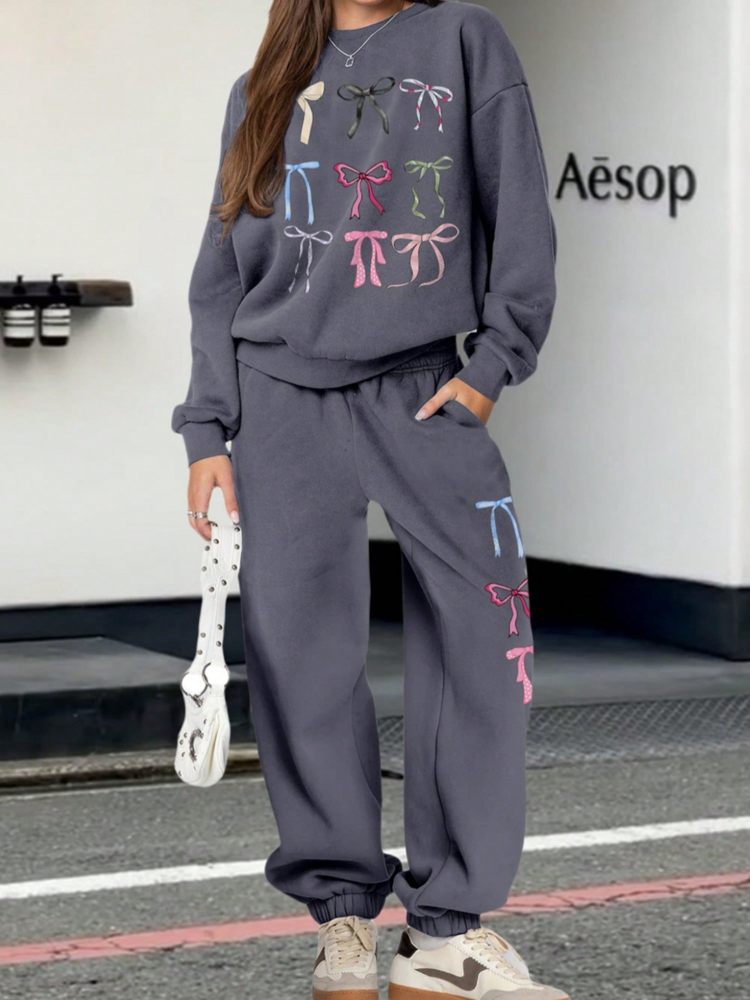 Women Y2k Sweatsuits Set Bow Print Long Sleeve Crew Neck Sweatshirt Graphic Hoodie Oversized Pullover Long Baggy Jogger Pants With Pockets Sweat Track Suits 2 Piece Set Fall Spring Outfit Aesthetic Clothes Streetwear For Teen Girls