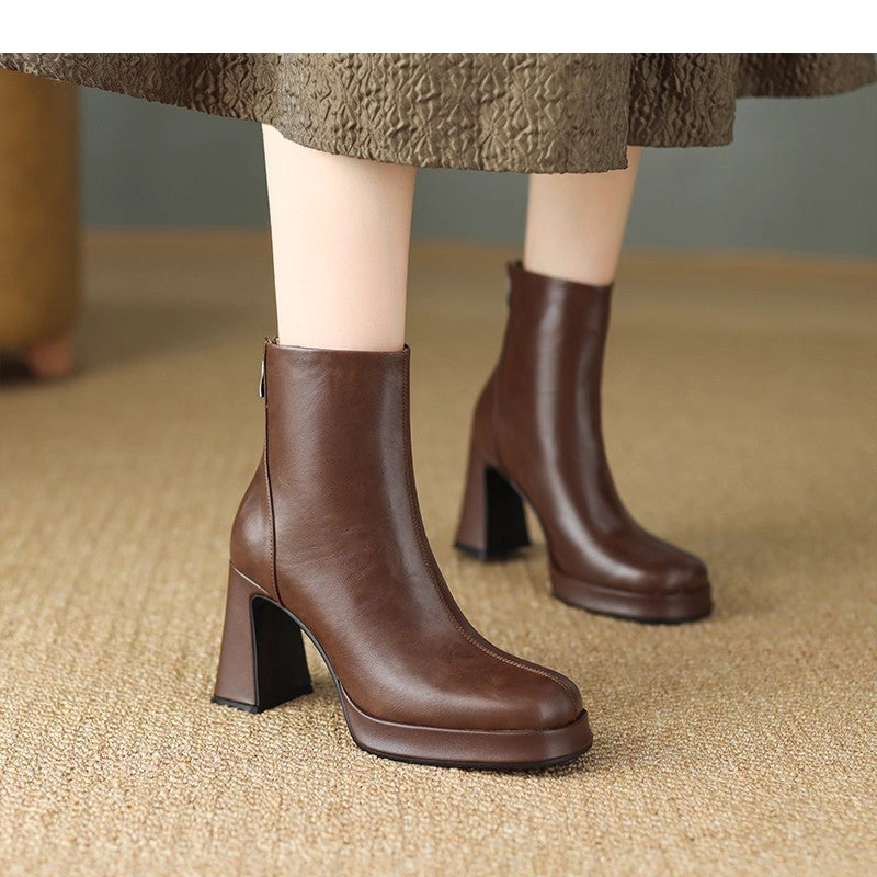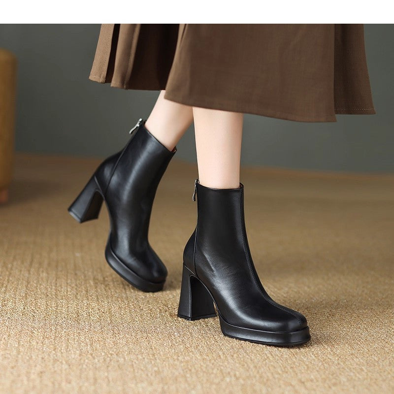 Women's 2025 Autumn/Winter New Arrival Chunky Heel British Style Thick Sole Chelsea Ankle Boots
