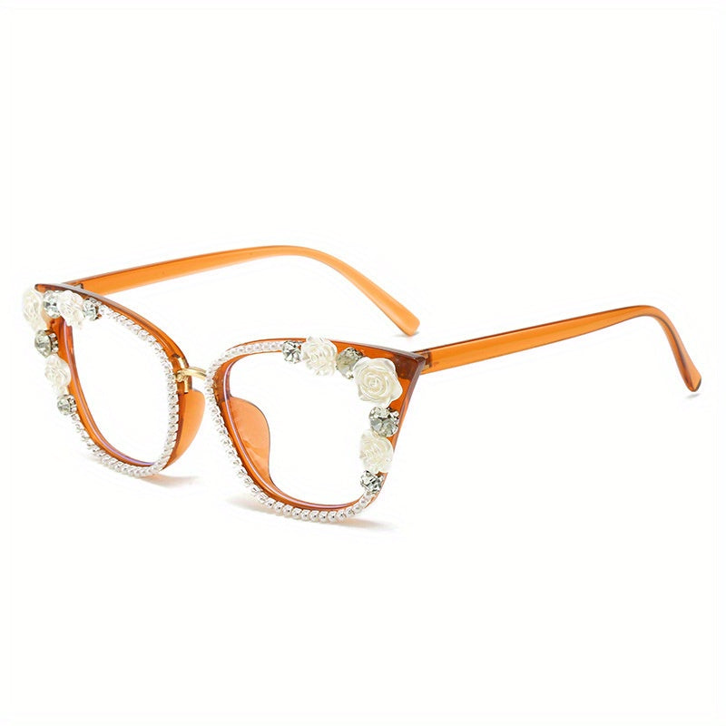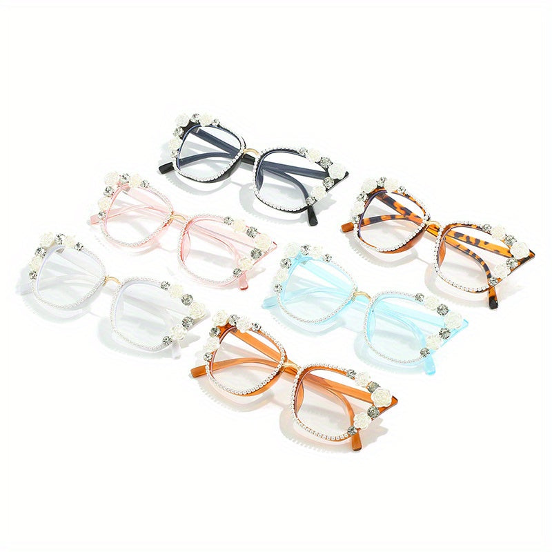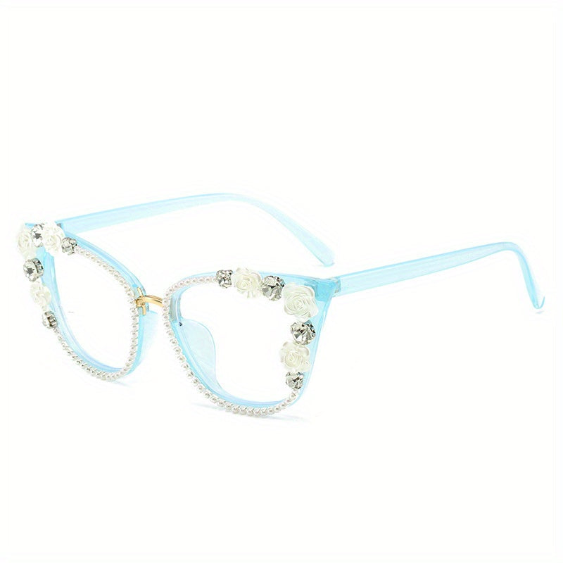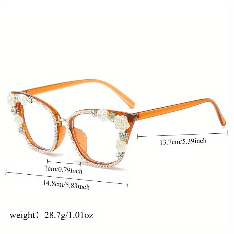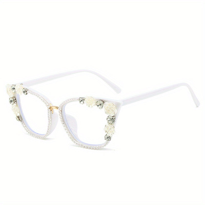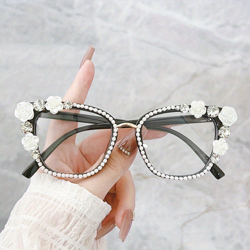 Women's Anti-Blue Light Glasses - Non-Prescription Computer, Phone, Party Eyewear with Cat Eye Effect & Floral design - Anti-Eye Strain, Black Frame with White Floral Accents - Compatible with Smartphone, Tablet, Laptop - Elegant Glasses for Women, Everyd