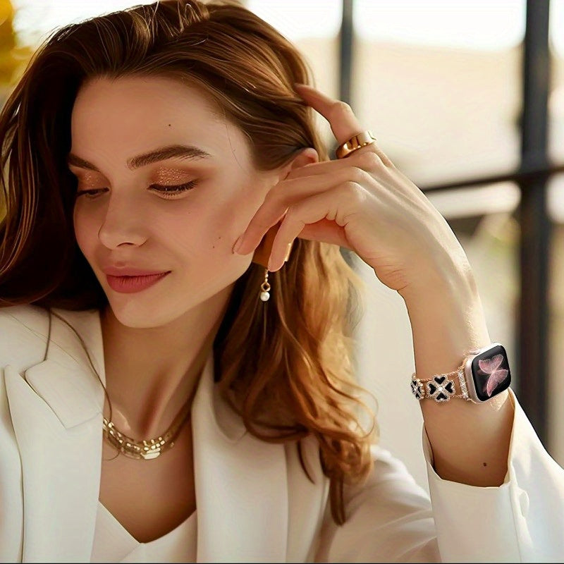 Women's Apple Watch Band with Rose Golden-Tone Chain-like Links, Compatible with Series 10/9/8/7/6/5/4/3/2/1 & SE, Elegant Jewelry Strap for 38mm/40mm/41mm/44mm/45mm/46mm/49mm Apple Watch - Everyday & Formal Wear, Apple Watch Accessories, Stylish Wristwea