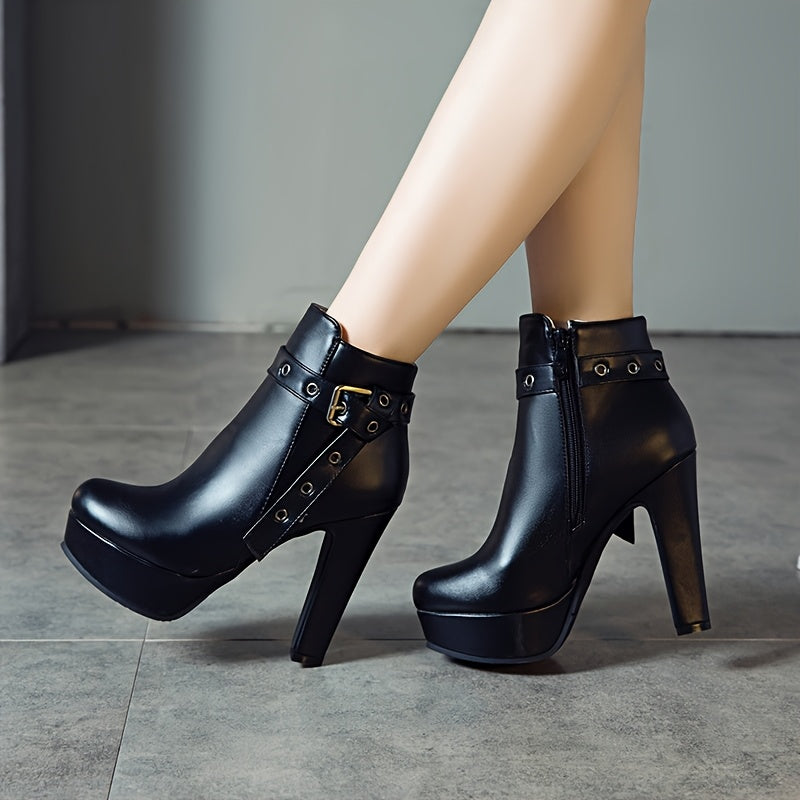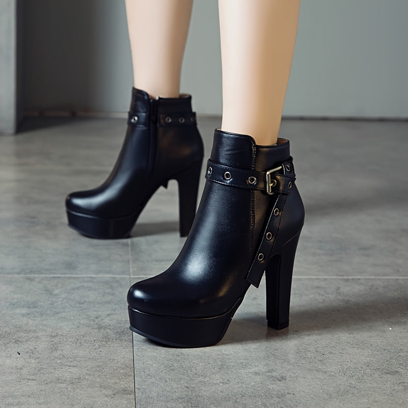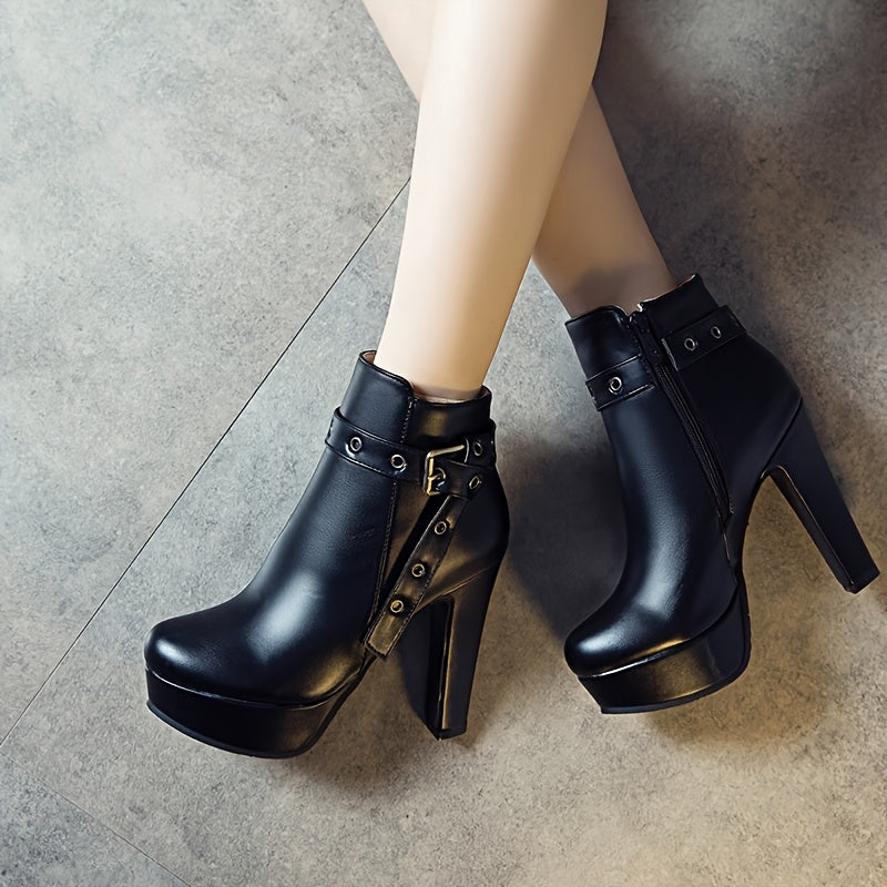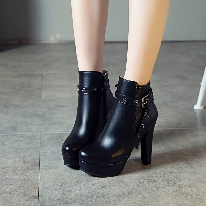 Women'S Black Ankle Boots with Adjustable Buckle Straps - 4.72inch Ultra-High Block Heel, 1.38inch Platform, Zipper Closure, Round Toe & Synthetic Cover for Winter Dresses, Party Shoes, Sleek Boot Design