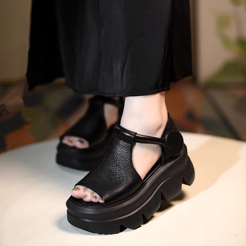 Women'S Black Platform Sandals with Adjustable Buckle Strap - Open-Toe PU Cover High Heel Shoes, Comfortable Rubber Sole for Casual & Formal Outfits, Chunky Heel Sandals, Formal Footwear, Modern Footwear, Durable Footwear